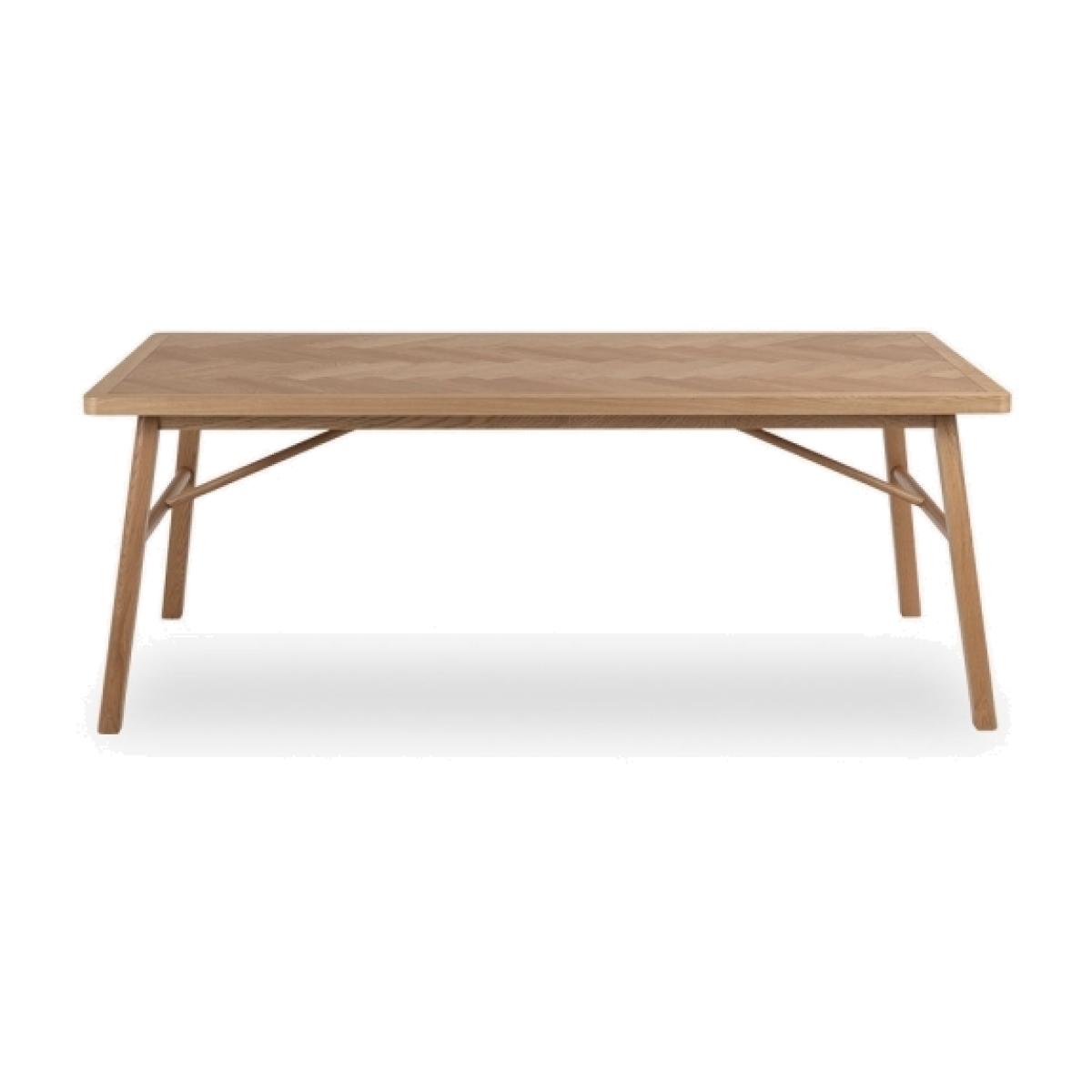 Add a rustic charm to your dining room or kitchen with the Galway dining table. Featuring a herringbone design in a oak - finished with a robust wood legs. Creating depth and texture in any dining space. Table Top/Leg Material: Engineered Wood, Oak Veneer No. of Seats: 8 people Assembly: Partial Assembly Required Download Assembly Instructions Care: Wipe clean with a dry cloth Dimensions: Total Size: H 75 x W 200 x D 100cm Underheight: 66cm Weight 43.7kg Packing Dimensions: 209 x 110 x 9cm. Buy your Galway 8 Seat Dining Table, Oak from a wide range of Furniture, Tables, Kitchen & Dining Room Tables
