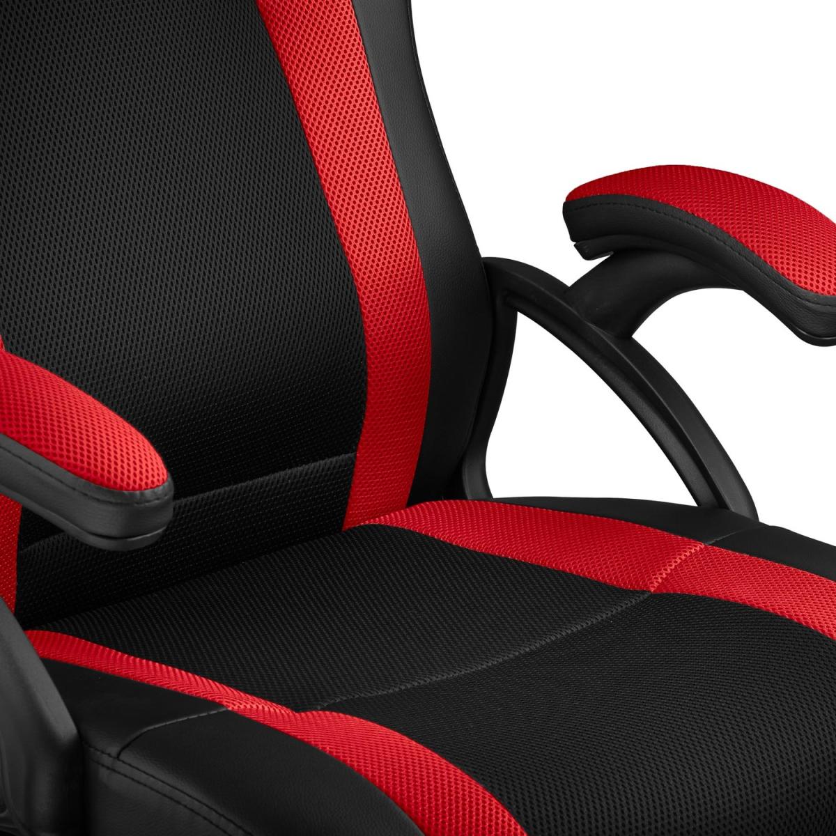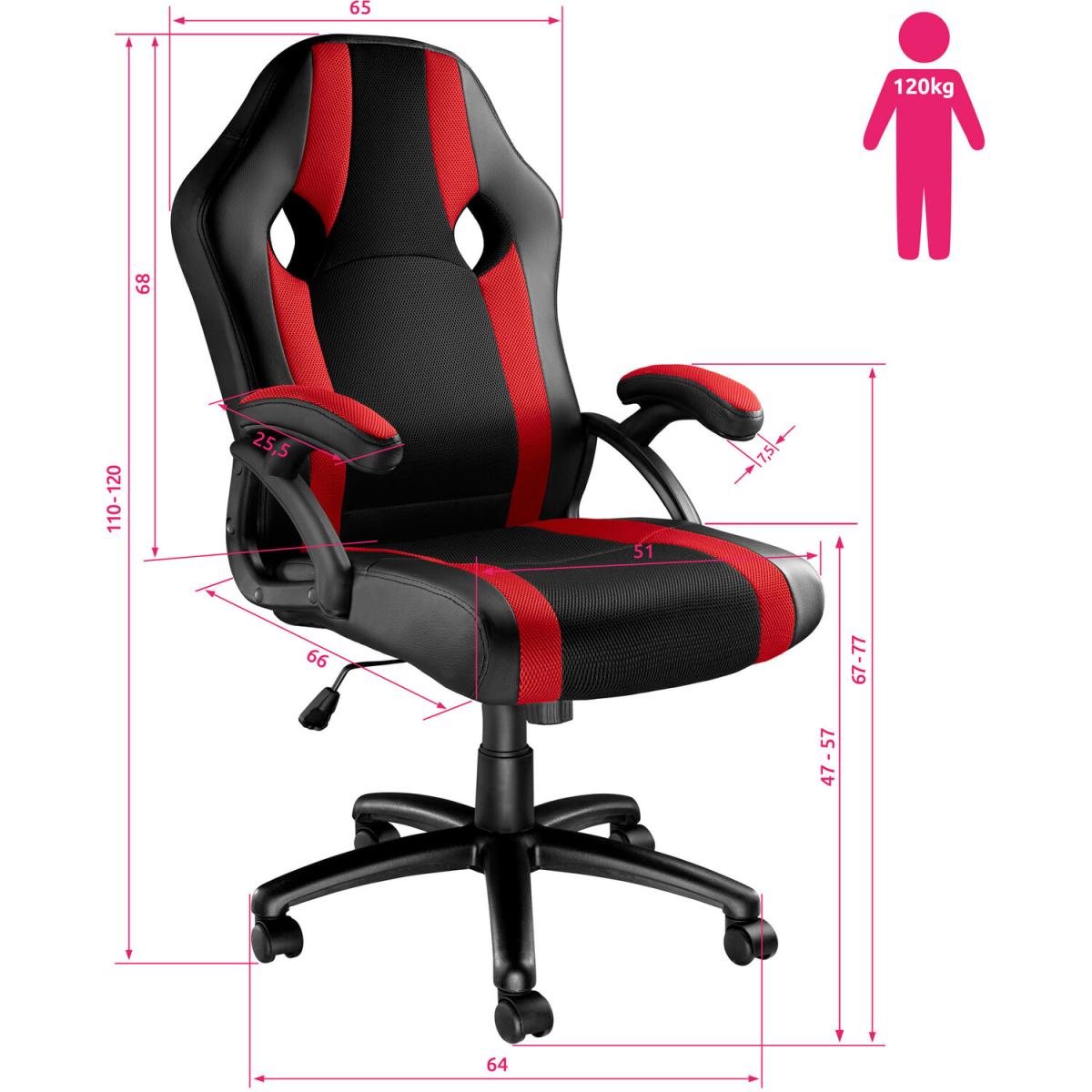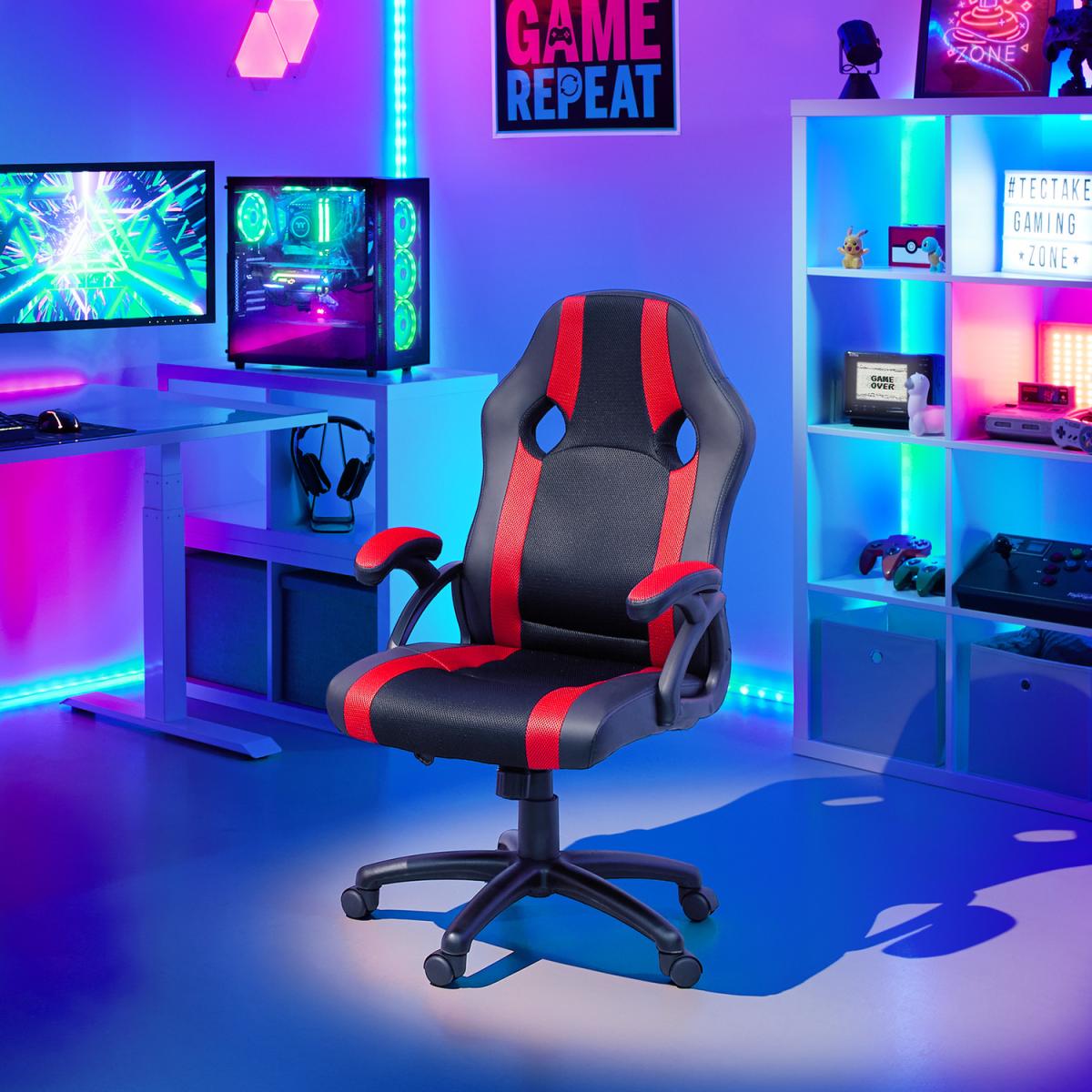 In this comfortable racing gaming chair from tectake, with its race stripes, youll be in the driving seat, racing full speed ahead towards the finish line. The comfortably padded swivel pc gaming chair features an ergonomic shape for support and encourages natural, healthy posture with its seamless adjustments. The light and airy mesh fabric cleverly wicks moisture away from the body, while the robust cross base of the gaming chair guarantees the necessary stability even when the heat is on. The plastics used give this low-maintenance racing gaming chair from tectake its ideal material properties and make it a favourite for pole position. These chairs are perfect to use in the home and office.