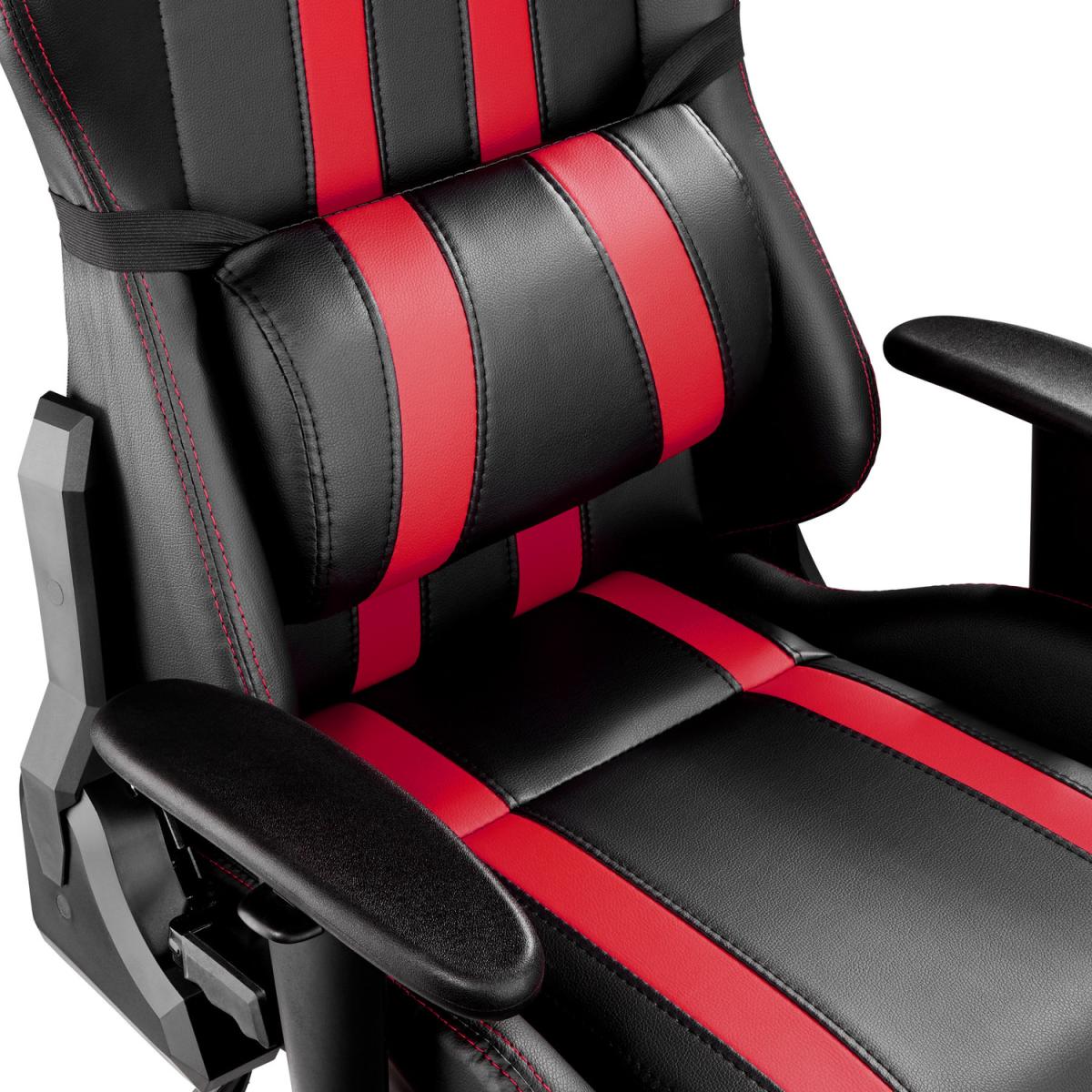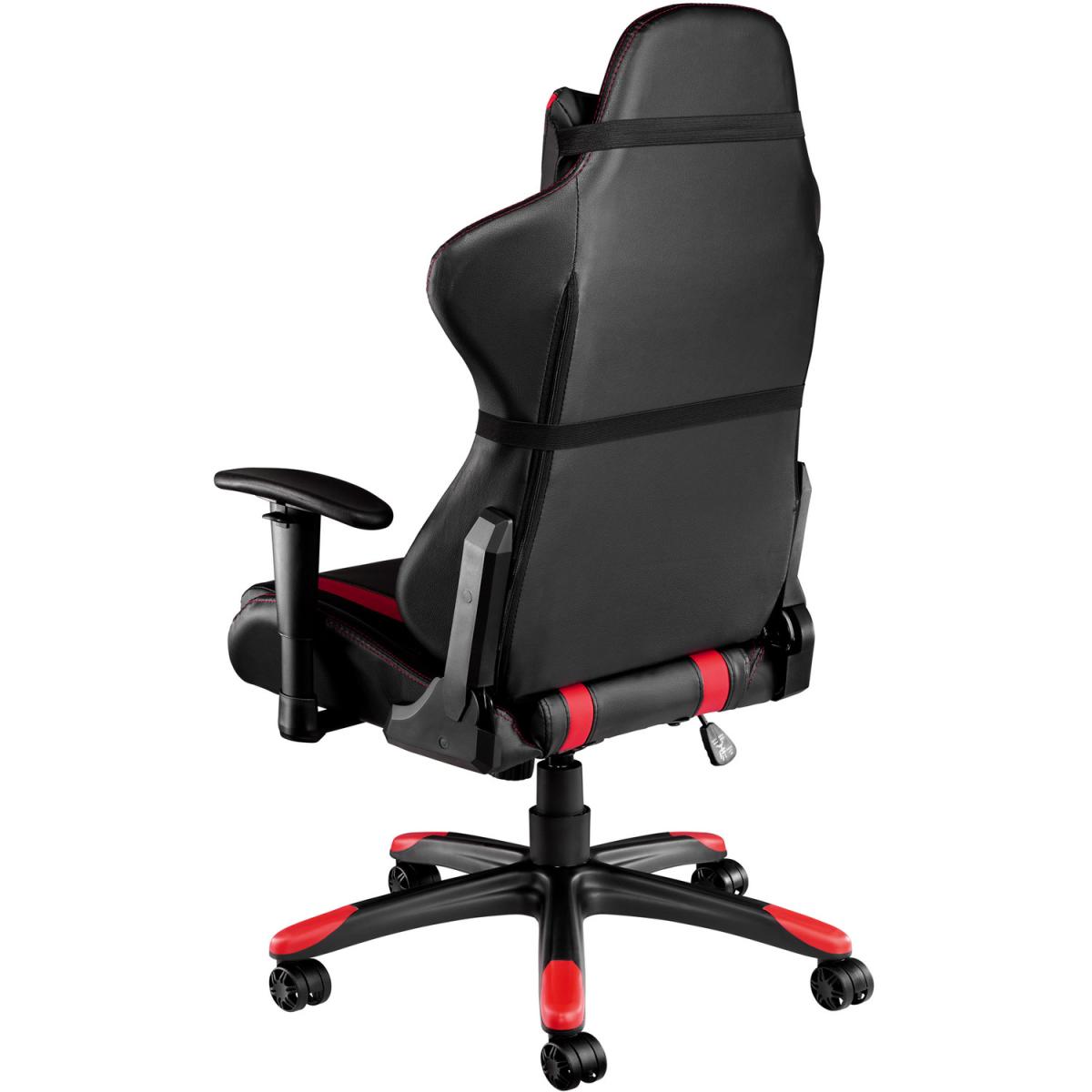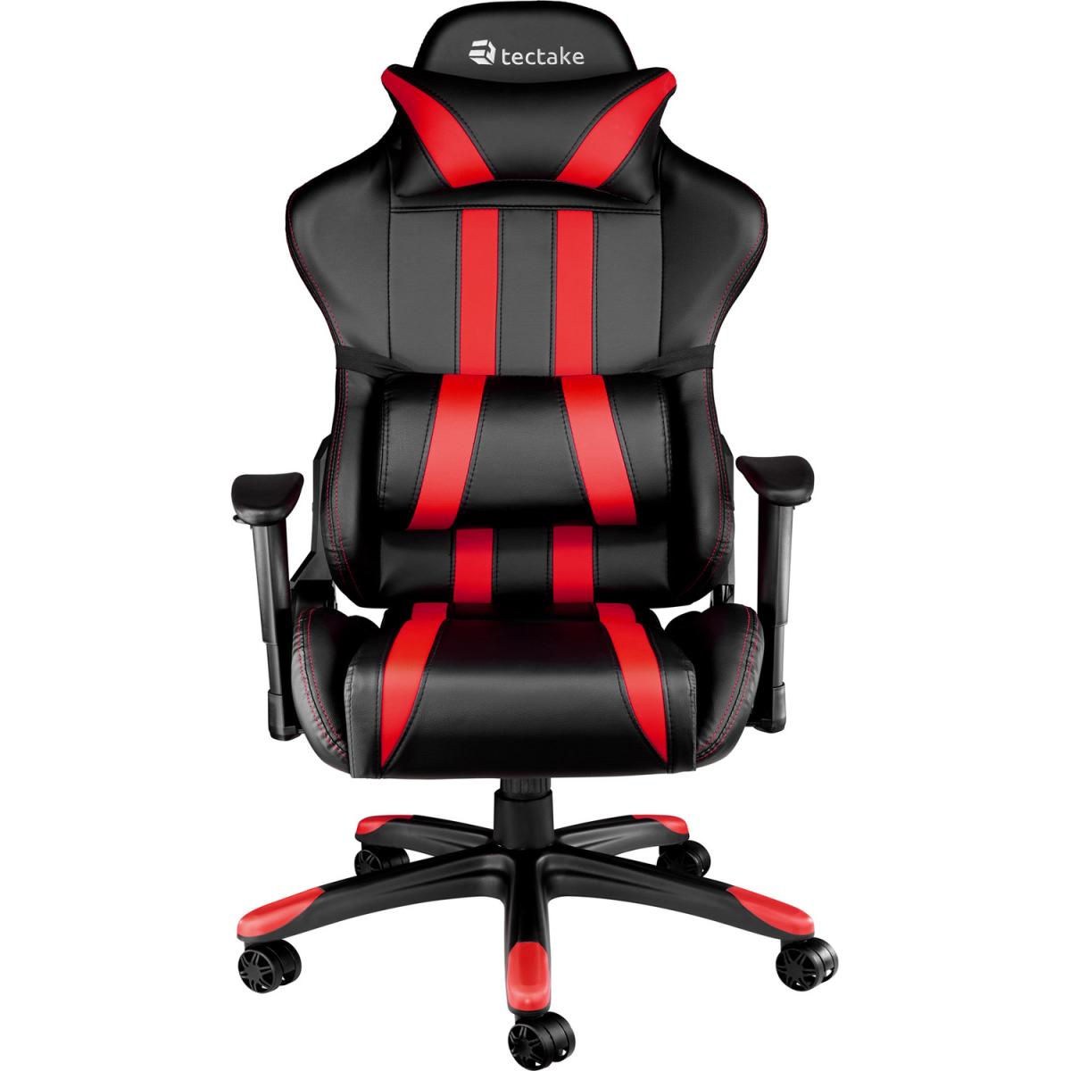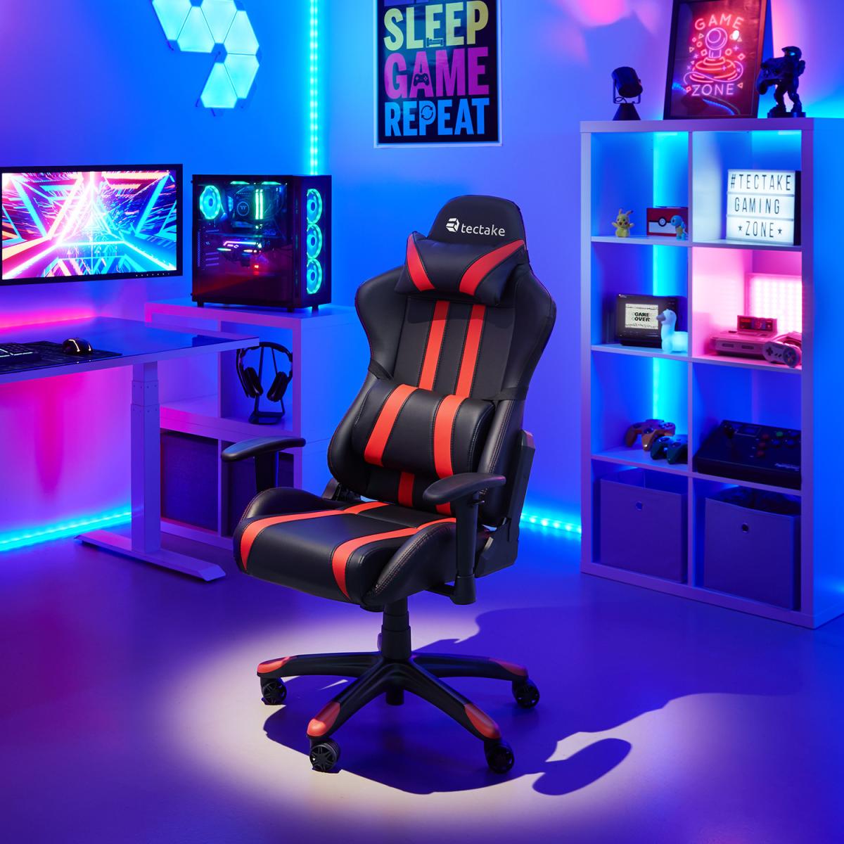With this premium gaming chair in a racing design by tectake, you can take the pole position in your home or office. The ergonomic gaming chair provides a real racing feeling when gaming and is extremely comfortable thanks to its extra-thick padding. The chairs seat and backrest are ergonomically designed to enable back-friendly working and gaming. At the same time, the seat stability is increased by the raised, stabilising side bolsters. To save your cervical area while sitting, this racing gaming chair has an additional neck pillow. A detachable lordosis cushion provides the necessary support in the lumbar region. For supporting the arms, this office gaming chair has high-quality, height-adjustable armrests. This gamer chair therefore meets all the requirements for a back-friendly, ergonomic sitting position. For relaxed reclining you can also align the tilt mechanism of the office chair individually to your body weight. This racing gaming chair is not only technically a masterpiece, but also aesthetically a perfect chair for a modern office or gaming room. The high bucket seat shape is perfectly rounded off by the two-tone cover made of sturdy and easy-care synthetic leather. This gives the gaming chair a sporty and very exclusive look, which is further enhanced thanks to the stitched seams and the black, high-gloss painted base. The cover of this chair also feels very comfortable and can be easily cleaned with a damp cloth. The assembly of this premium gaming chair is very simple and thanks to the included assembly instructions, can be completed in a few simple steps. Benefit from a dream price performance ratio and buy the premium gaming chair from tectake for your home.