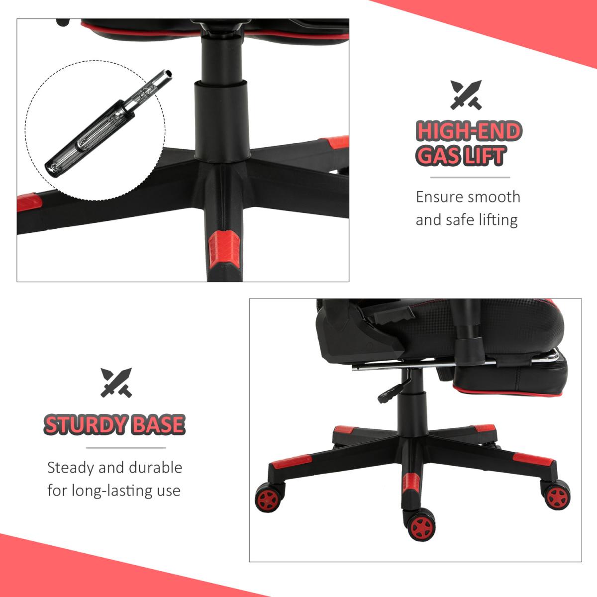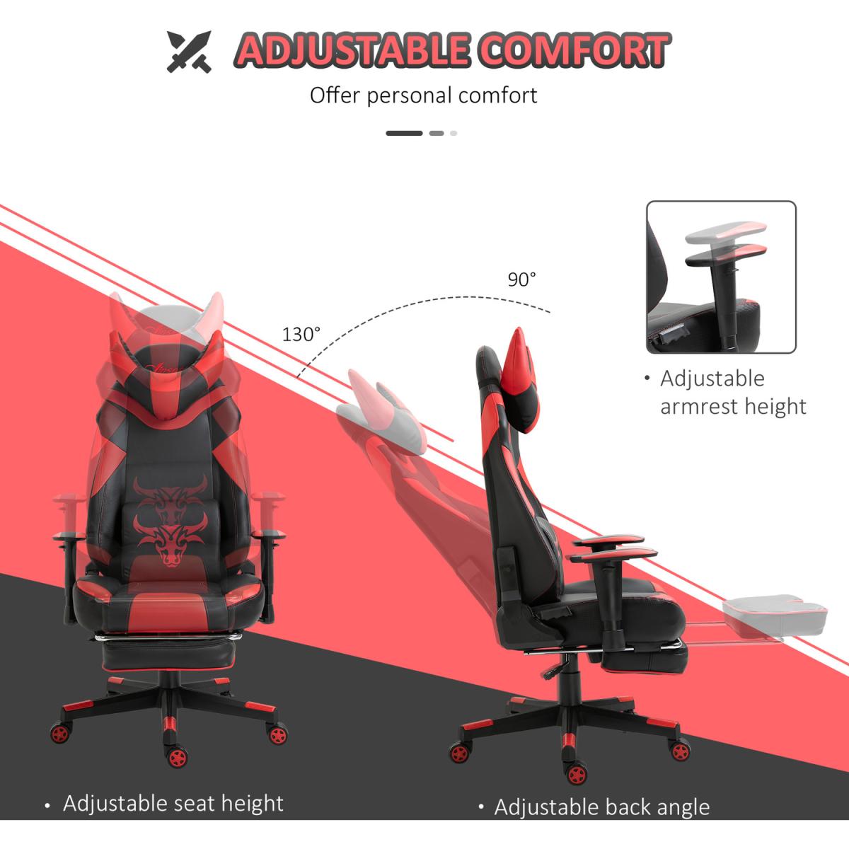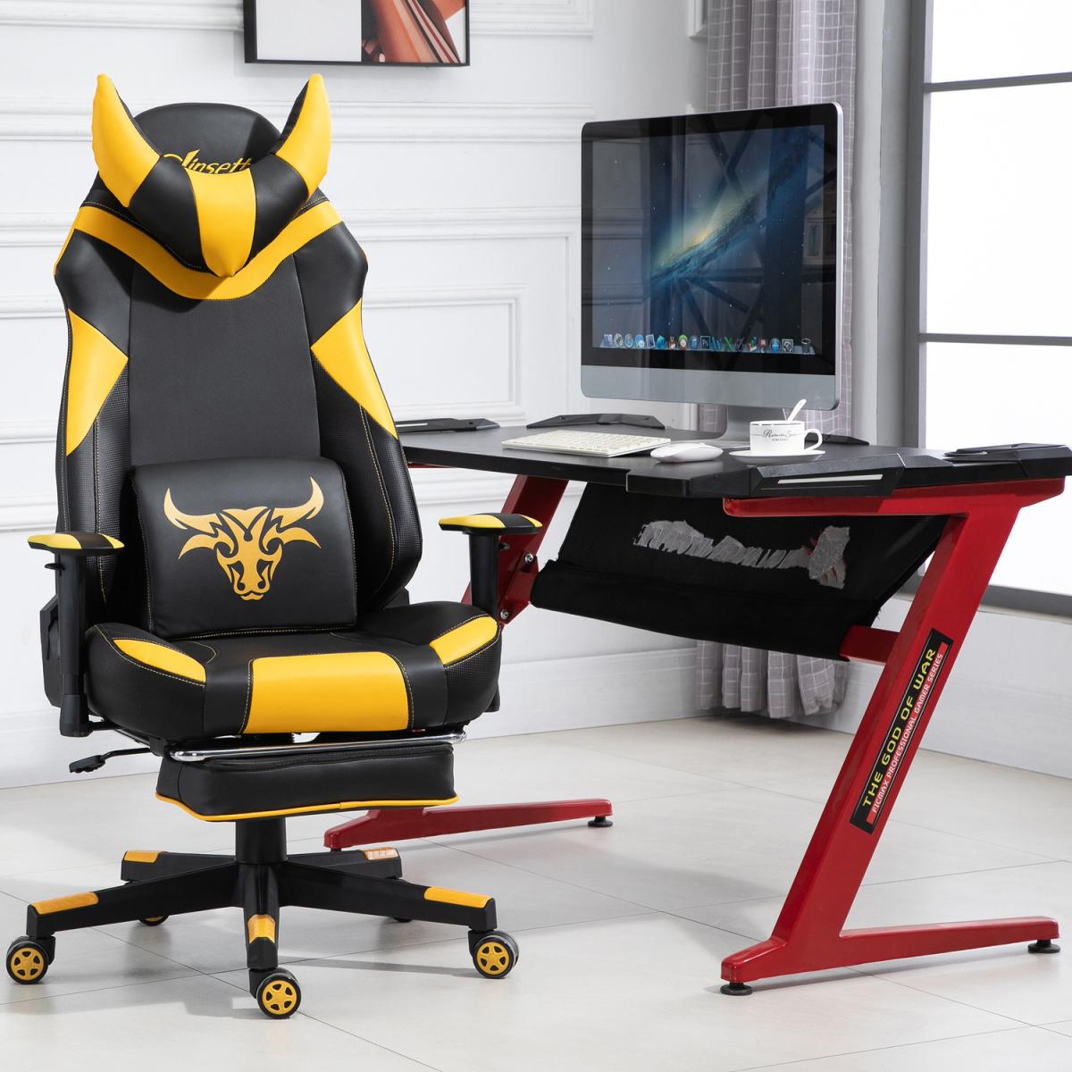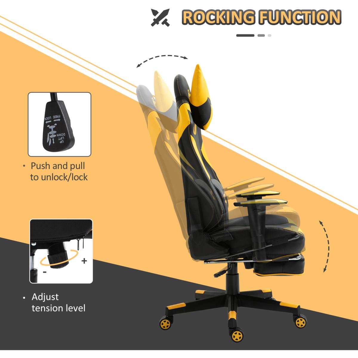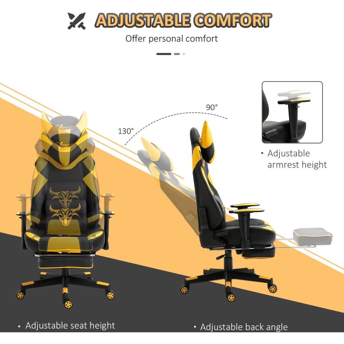Welcome supreme comfort and serious style into your gaming room, thanks to this super cool chair from Vinsetto. Its made with thick padding, a high back, adjustable armrests and a five-wheel base, making it extremely comfortable and suitable for long hours seated. It's also fitted with a manual footrest which can be pulled out and pushed back in, working together with the reclining back if you ever want to lay back into a different position. A removable pillow on the head/neck area and the back provide extra support, and it's finished with super-slick PU leather upholstery, where splashes of yellow panels adorn the whole chair for a touch of impressive colour.