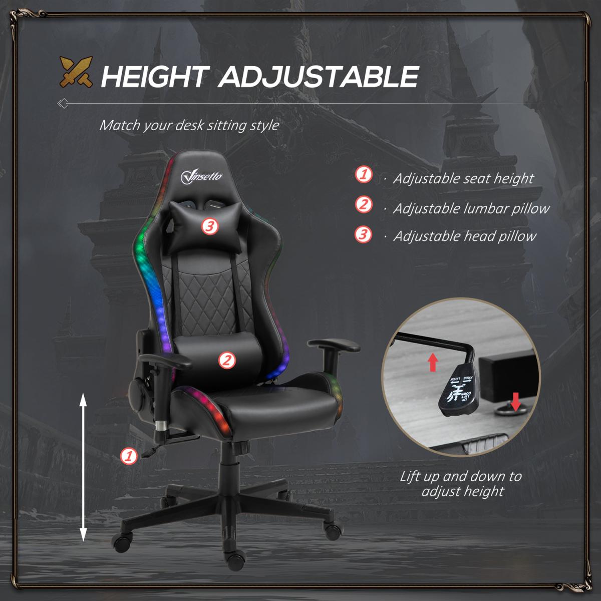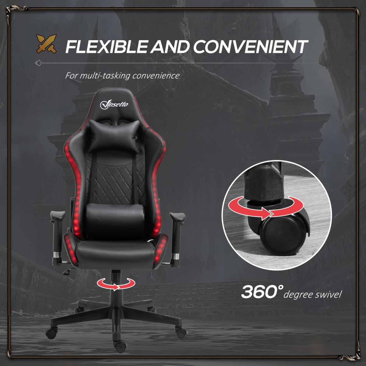 Choose this gaming chair from Vinsetto to show your respect to game. You can put it in the office, study, E-sports training room. Featuring in racing backline design with thick padding and soft fabric, it provides extra comfort for long-period working or gaming. You can adjust the seat height to get a better sitting experience. In the work, you can quickly move with its swivel wheels to have a quick chatting.