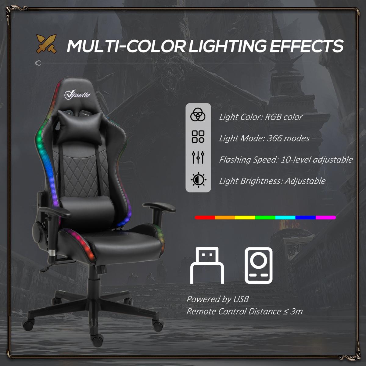 Gaming Chair with RGB LED Light - Black