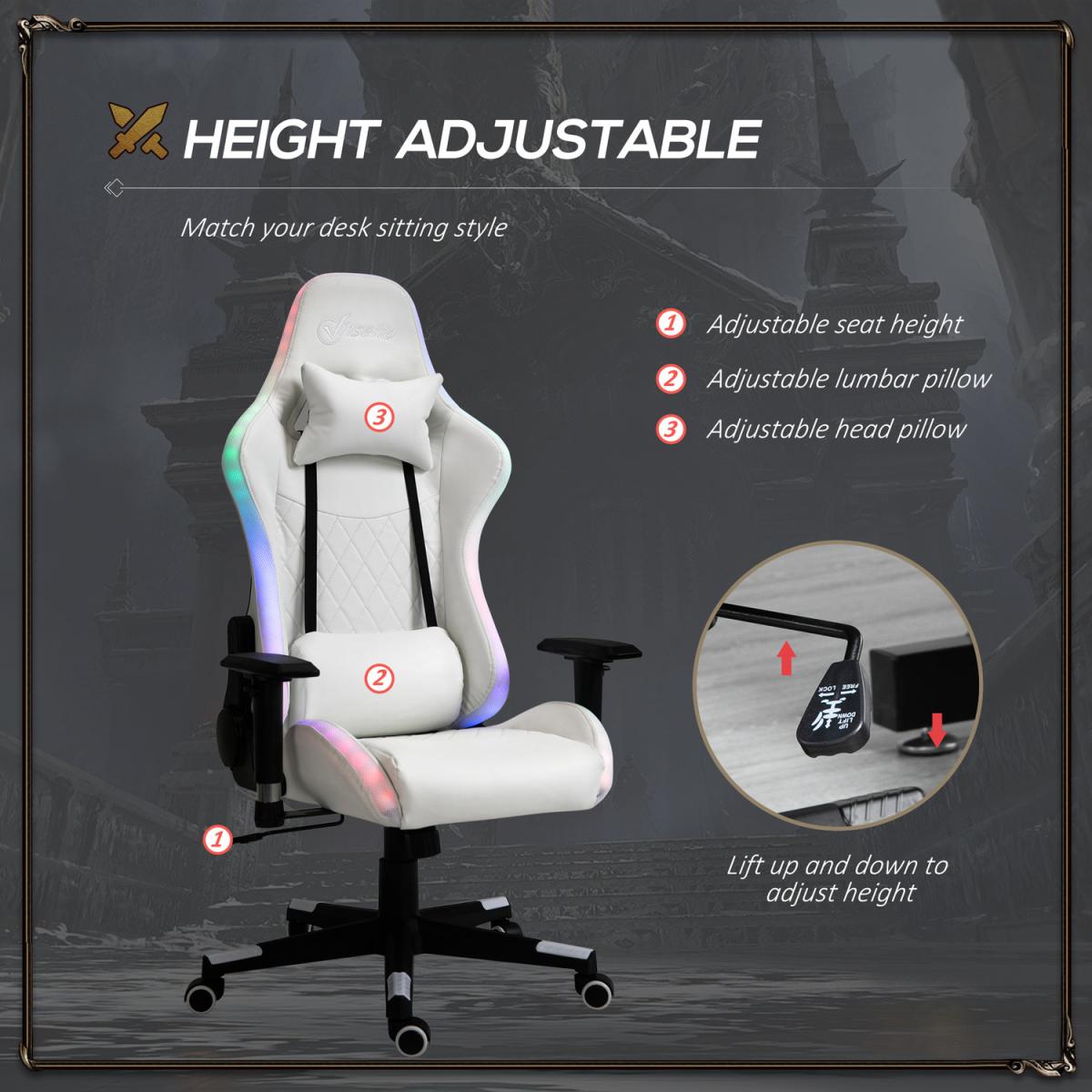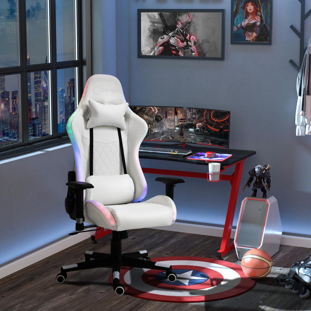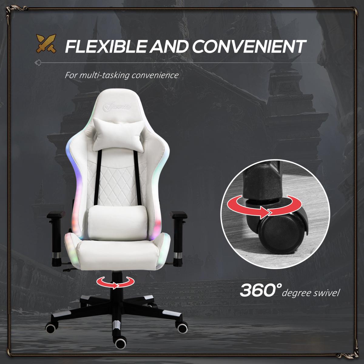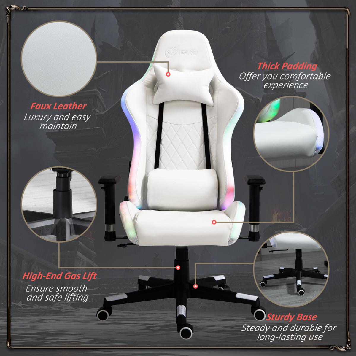 Gaming Chair with RGB LED Light - White