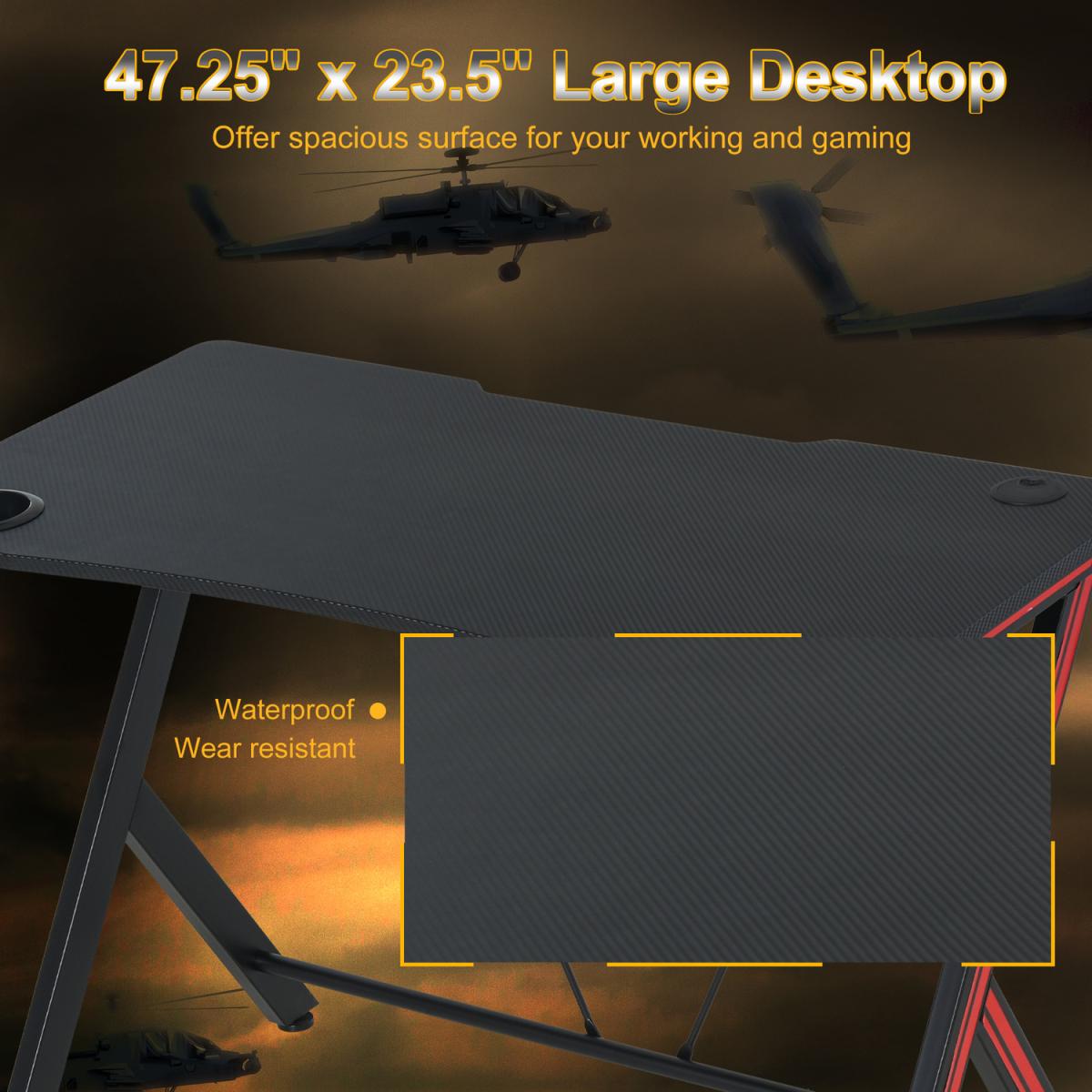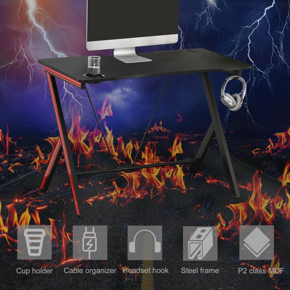 Attention to detail wins games - that's why this gaming desk from HOMCOM is built to succeed. It's made with a large tabletop, which gives you plenty of gaming and working room, spacious enough for holding monitors and other electric accessories. It also has a built-in headphone hook and cup holder for easy-reach convenience. Smooth edges ensure the structure is safe, and it's finished with adjustable feet so it keeps balanced at all times.