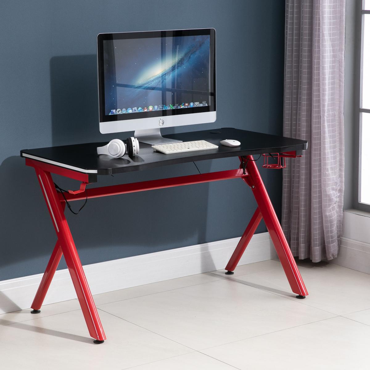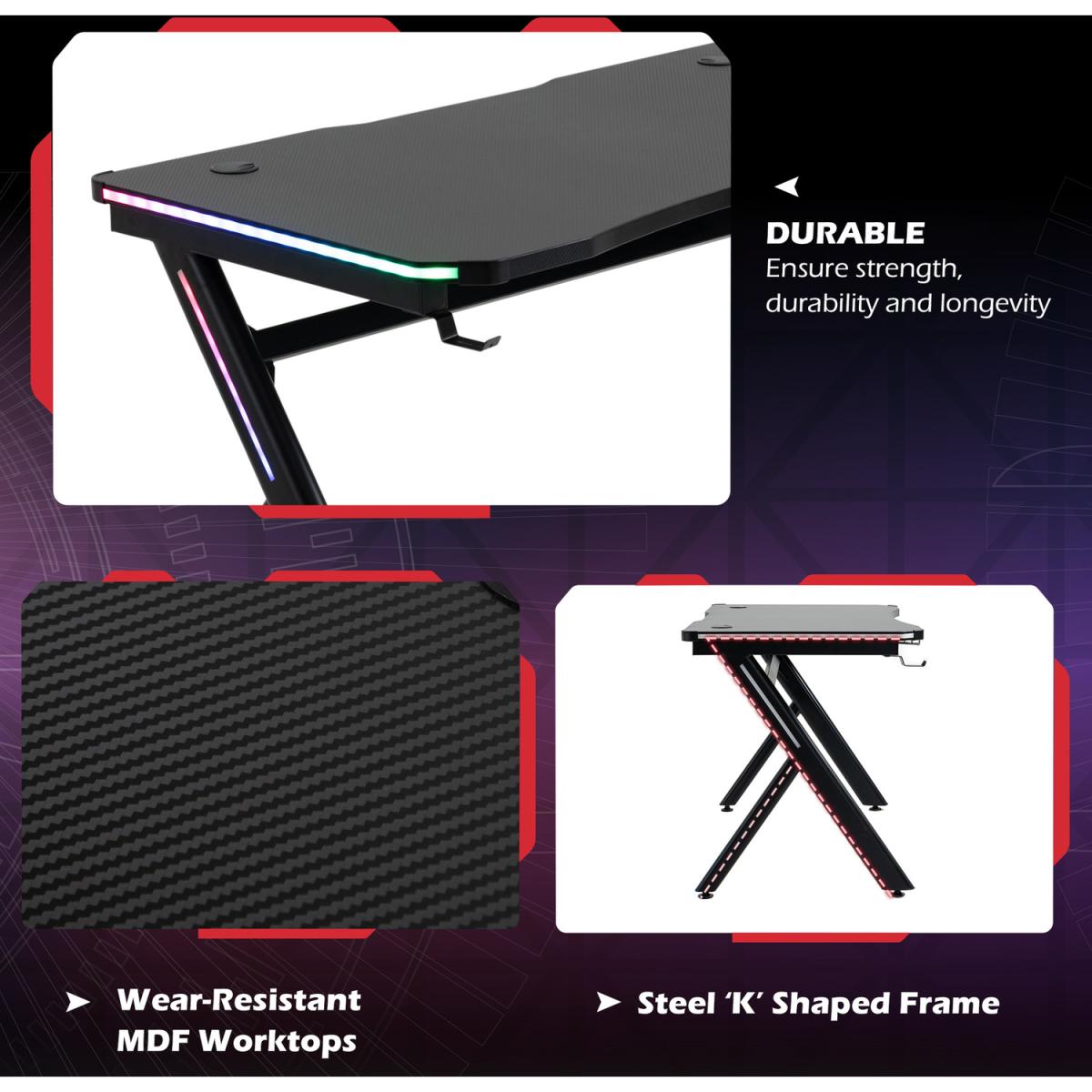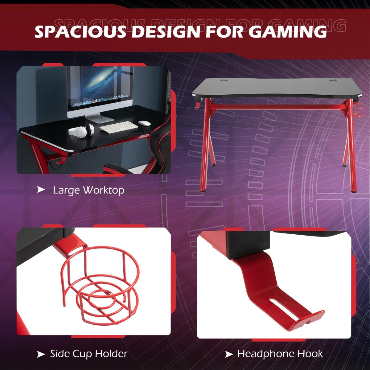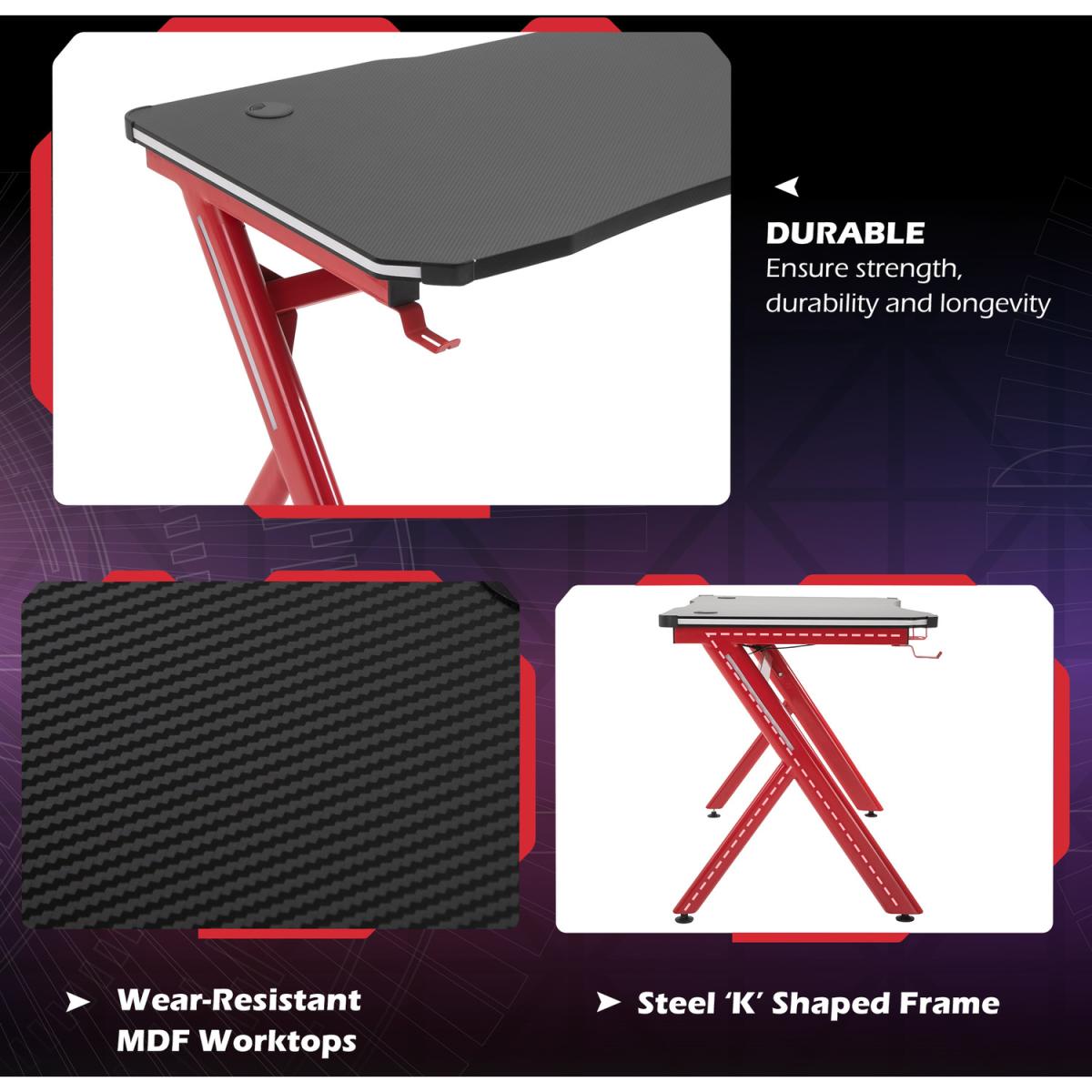 Make your gaming time fun with this stylish desk. Features high-quality MDF, it is durable. Featuring a large main worktop, a cup holder and a hanging hook, it allows you to keep cups and headphones etc. conveniently close to you so you will not have to move whilst you are in the midst of a game, with adjustable feet to ensure the unit is level at all times. The perfect piece for creating your own gaming haven at home.