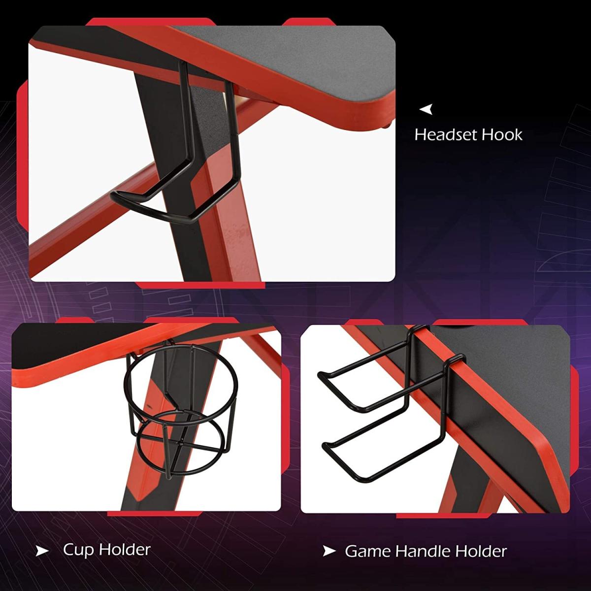 All dedicated gamers know the importance of a good table. This year, do it the HOMCOM way with this impressive piece. The frame, made from steel ensures a solid and tough core that won't wobble or warp. It features an MDF worktop which is large enough for your consoles, screens and devices, in a black and red piped design for style. It is also equipped with a headphone hook, cup holder, controller holder and a wire box for extra organisation. Finished with foot pads to protect the floor.