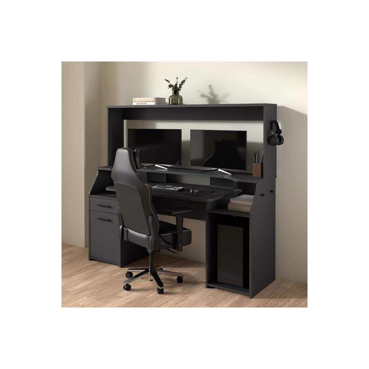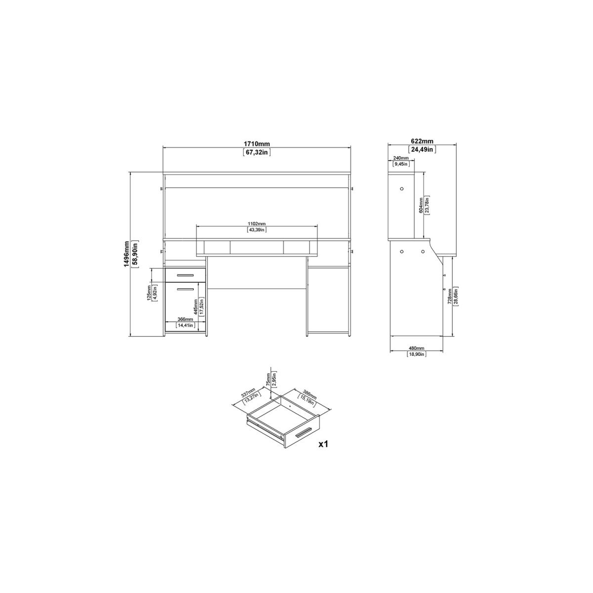 All about me Introducing the Function Plus Gaming Desk, designed to elevate your gaming experience. This sleek desk offers ample storage space and optimal organisation for your gaming setup. Its durable construction ensures stability during intense gaming sessions, while the modern design seamlessly blends into any environment. Set up is a breeze, allowing you to spend less time assembling and more time gaming. Unleash your gaming potential with the Function Plus Gaming Desk today. Need to know Product dimensions:W171 x D62.2 x H149.6 cm Inner drawer dimensions:W57.2 x D28.2 x H6.5 cm Product weight: 65.6kg Number of drawers: 1 & 1 door Colour:Black Material: Chipboard Assembly required: Yes Packaging dimensions: W64.3 x D118.2 x H125 cm, W42.4 x D179 x H11.4 cm Packaging weights: 34.7kg, 30.9 kg