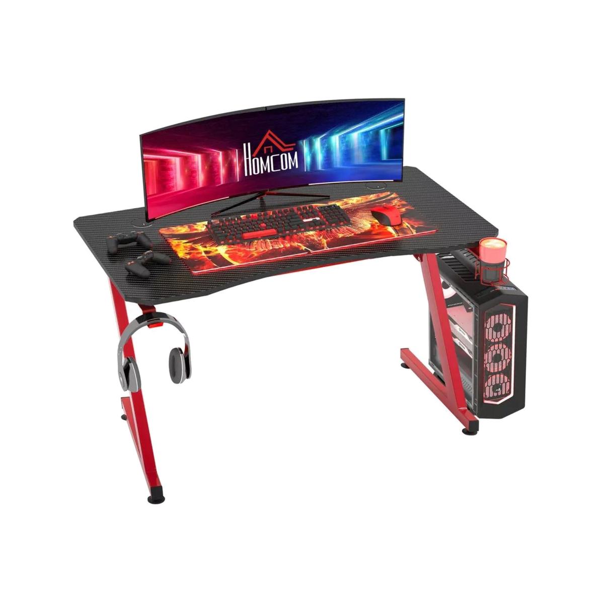 Gaming Desk with Cup and Headphone Holder - Black and Red