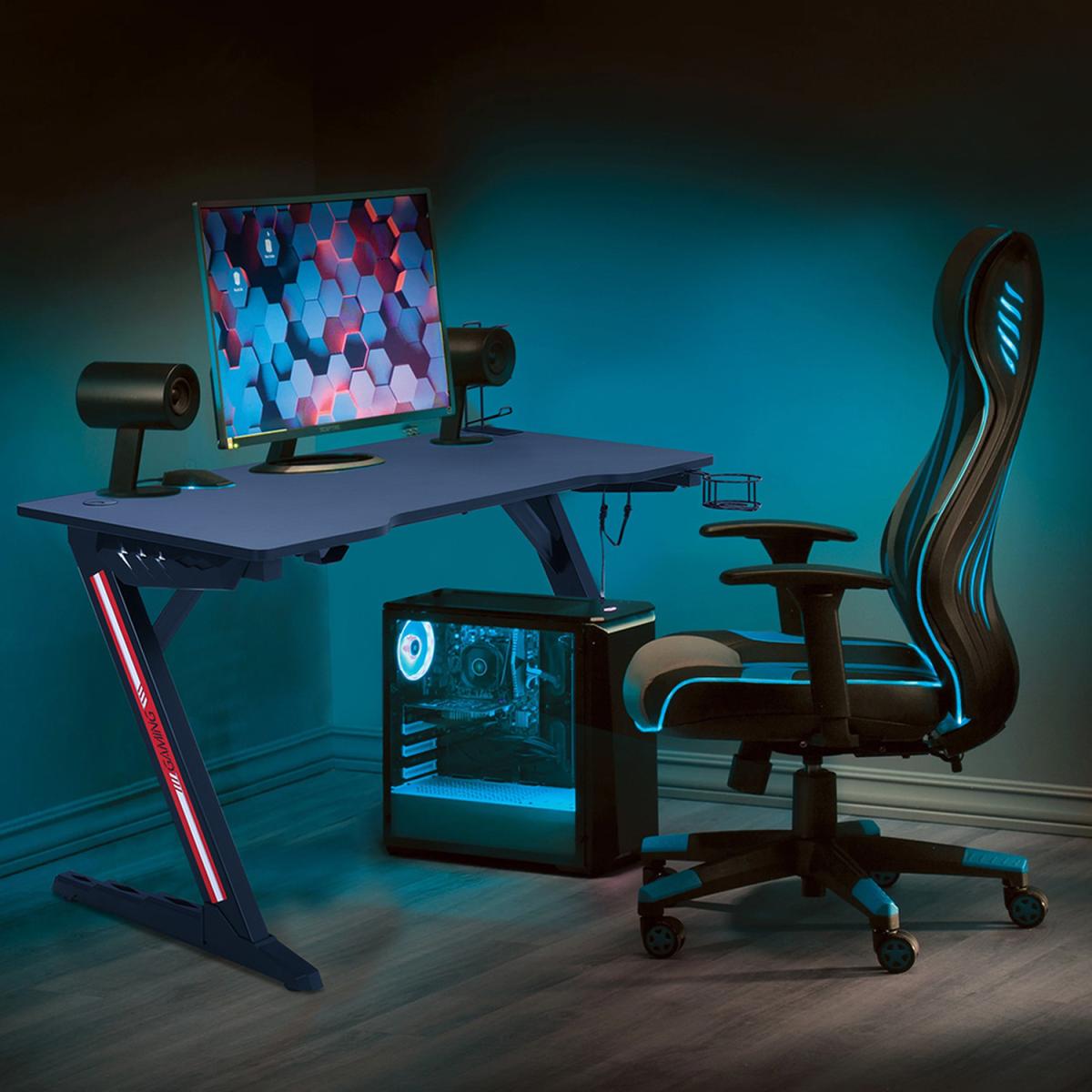 This gaming desk with LED lights adds a sleek, contemporary vibe to any setup, especially in modern or minimalist interiors. I love how the LED feature brings a fun, high-tech touch, making it a real statement piece without overwhelming the space. It works well in kids’ rooms, dedicated gaming rooms, or even in stylish home offices that want to merge tech with a contemporary look. For styling tips, keep the surrounding area clutter-free and opt for matching accessories like LED strip lighting or monochrome storage to keep the focus on the desk’s clean lines and fun lighting feature. Pairing it with a confident colour palette-think dark greys, blacks, or bold accent hues-can really make it pop while maintaining a sleek overall aesthetic.