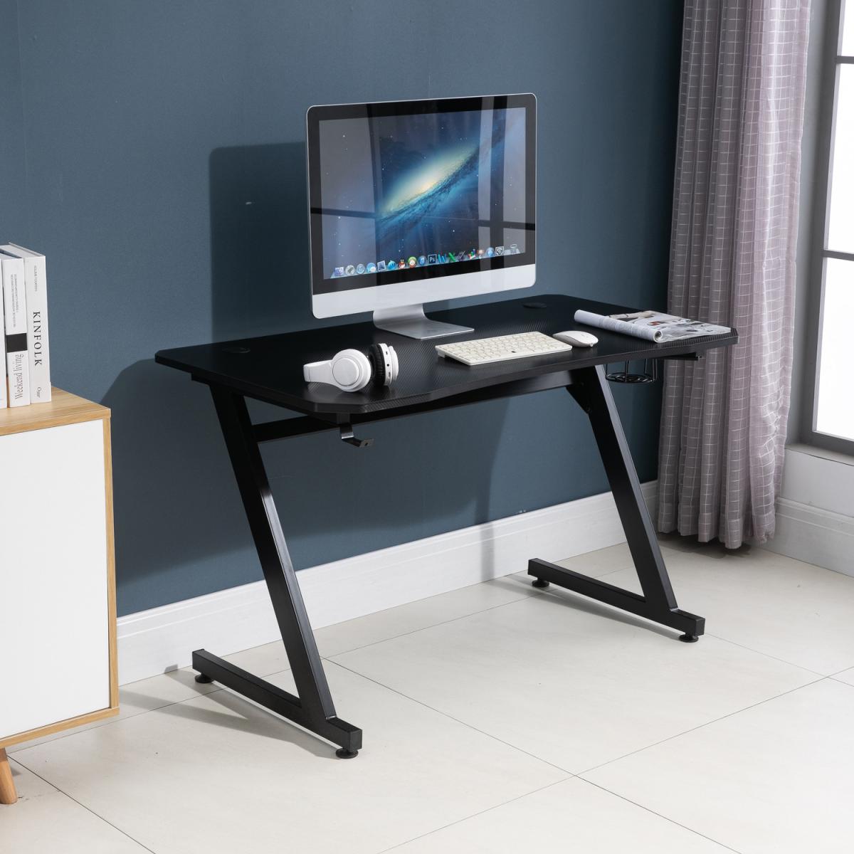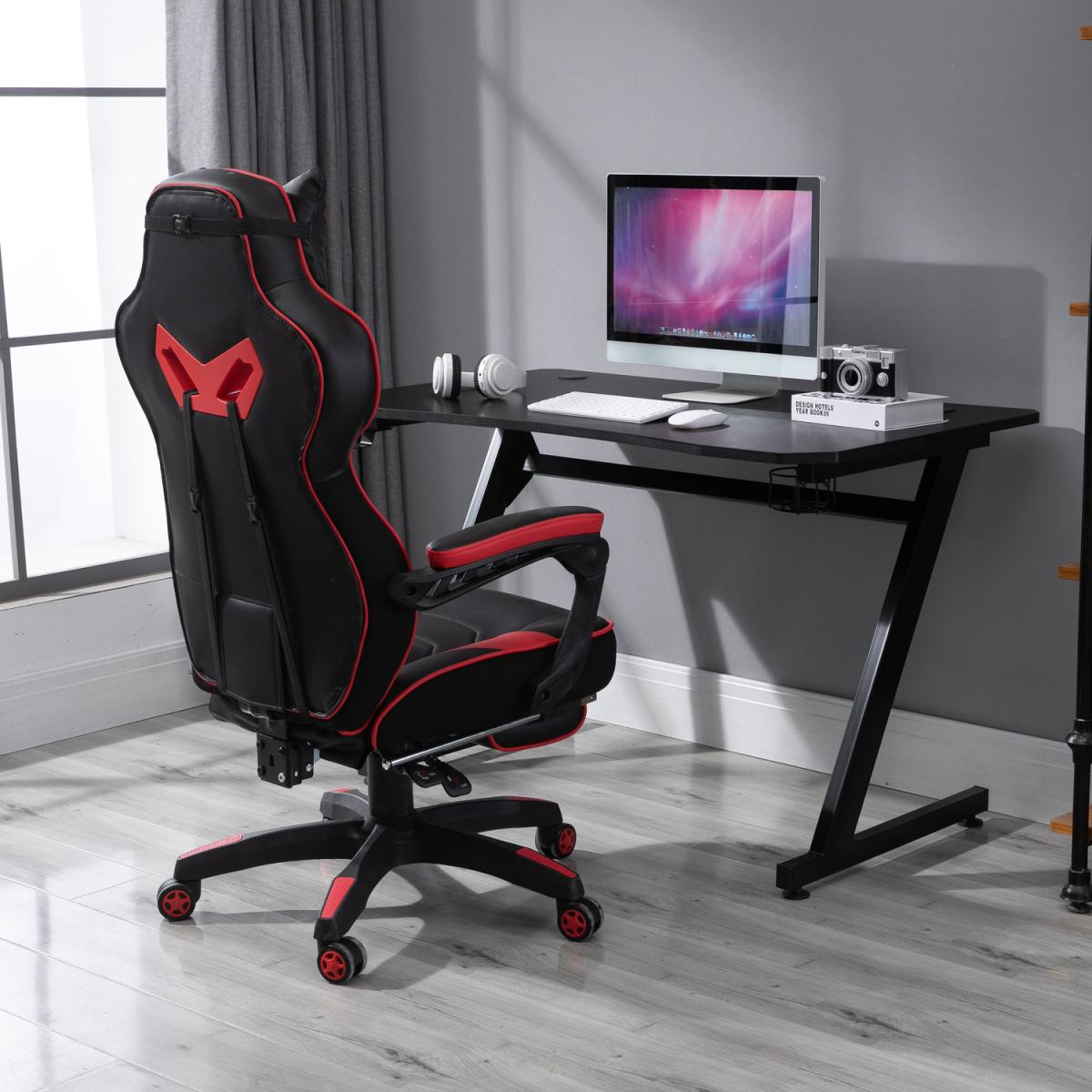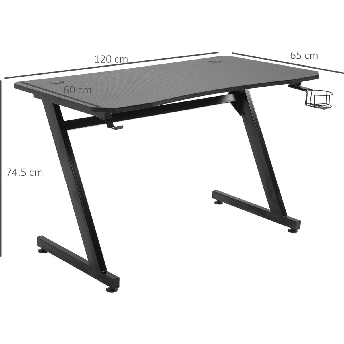 Transform your gaming time with this stylish desk from HOMCOM. Made from particleboard for a durable and reliable structure, it features a large main worktop, a cup holder and a hanging hook, giving you everything you need to keep everything together. Steel legs keep the balance in check, and adjustable feet ensure this desk will be balanced even on unsteady ground. It's finished with a cable organiser on the back so the wires keep untangled and out of your way. A must-have piece for your own gaming heaven.