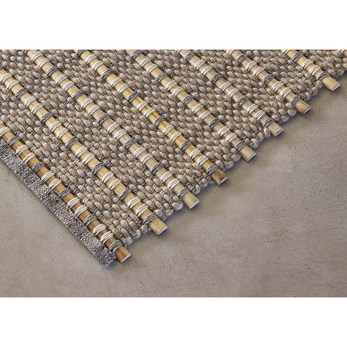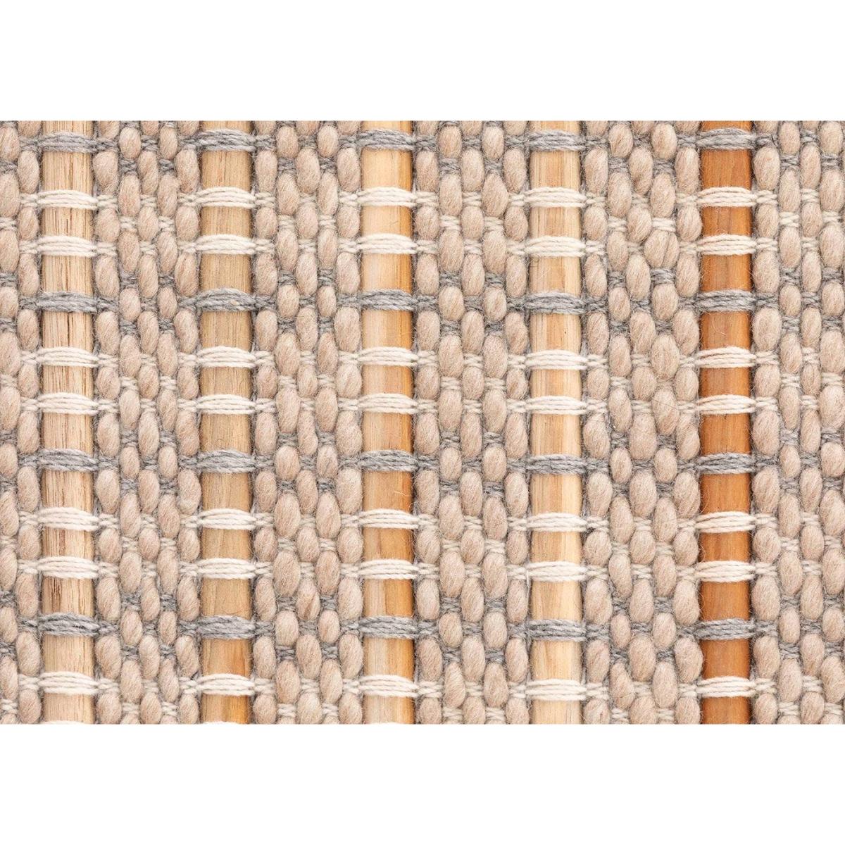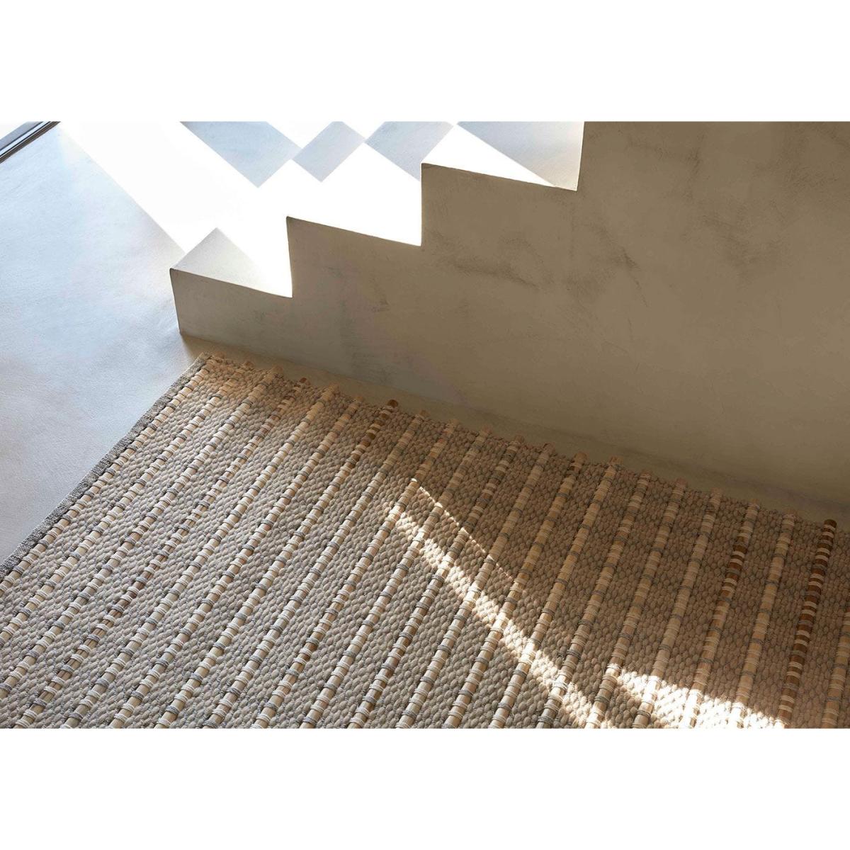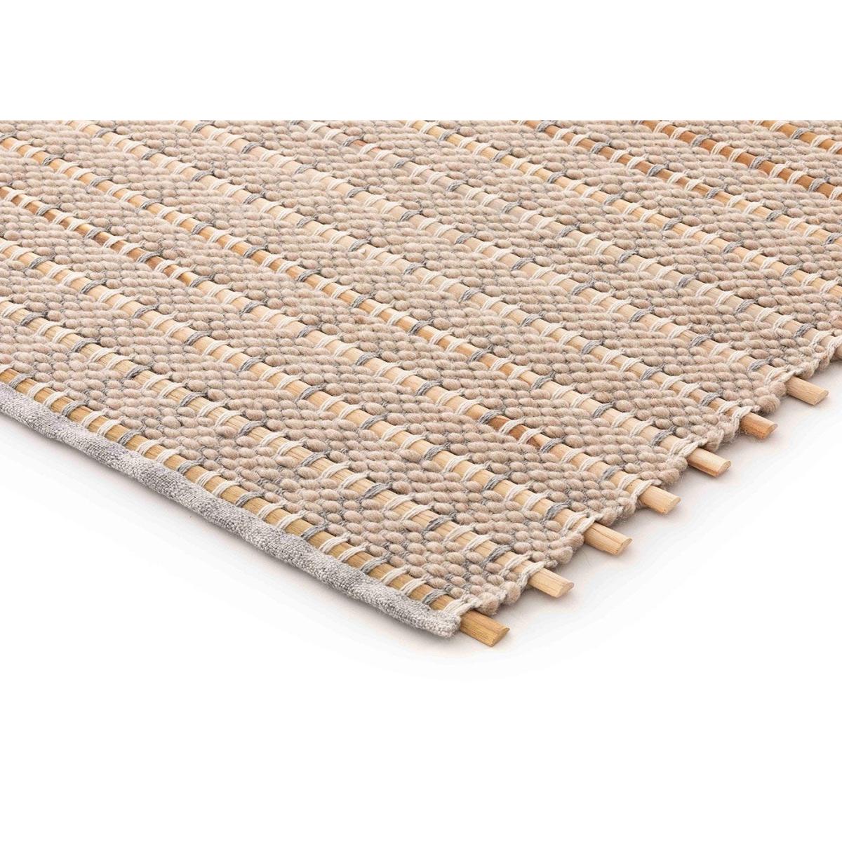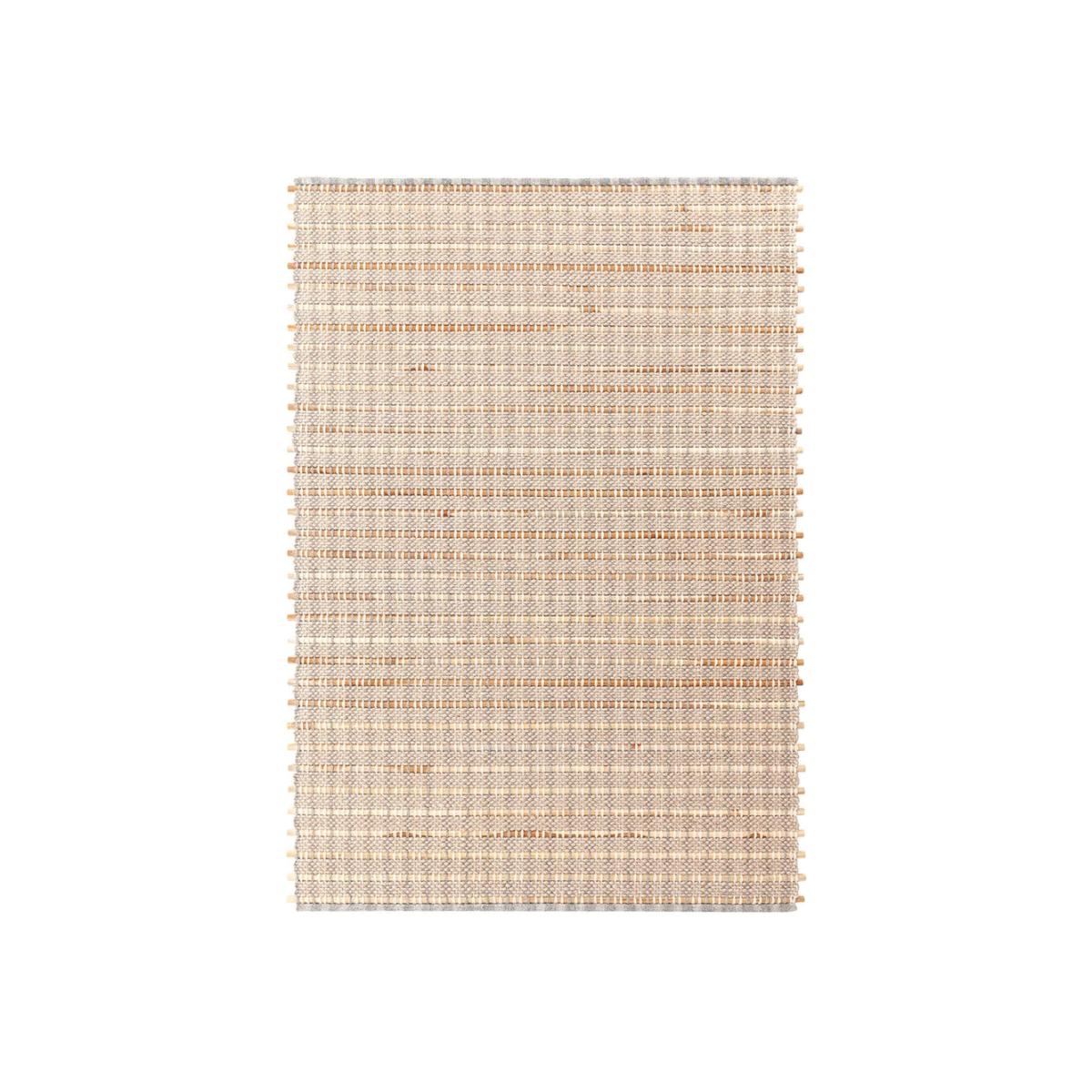Designed by Kengo Kuma. On a manual loom, expert craftsmen insert teak wood rods that are circular, semicircular, or square in section into a framework of undyed virgin wool. Composed of three rugs, Tsuchi, Kiri and Ame which are terms for fog, rain, and soil in Japanese. The collection extols the genuine beauty of handmade objects and focuses on the coexistence of materials in nature.