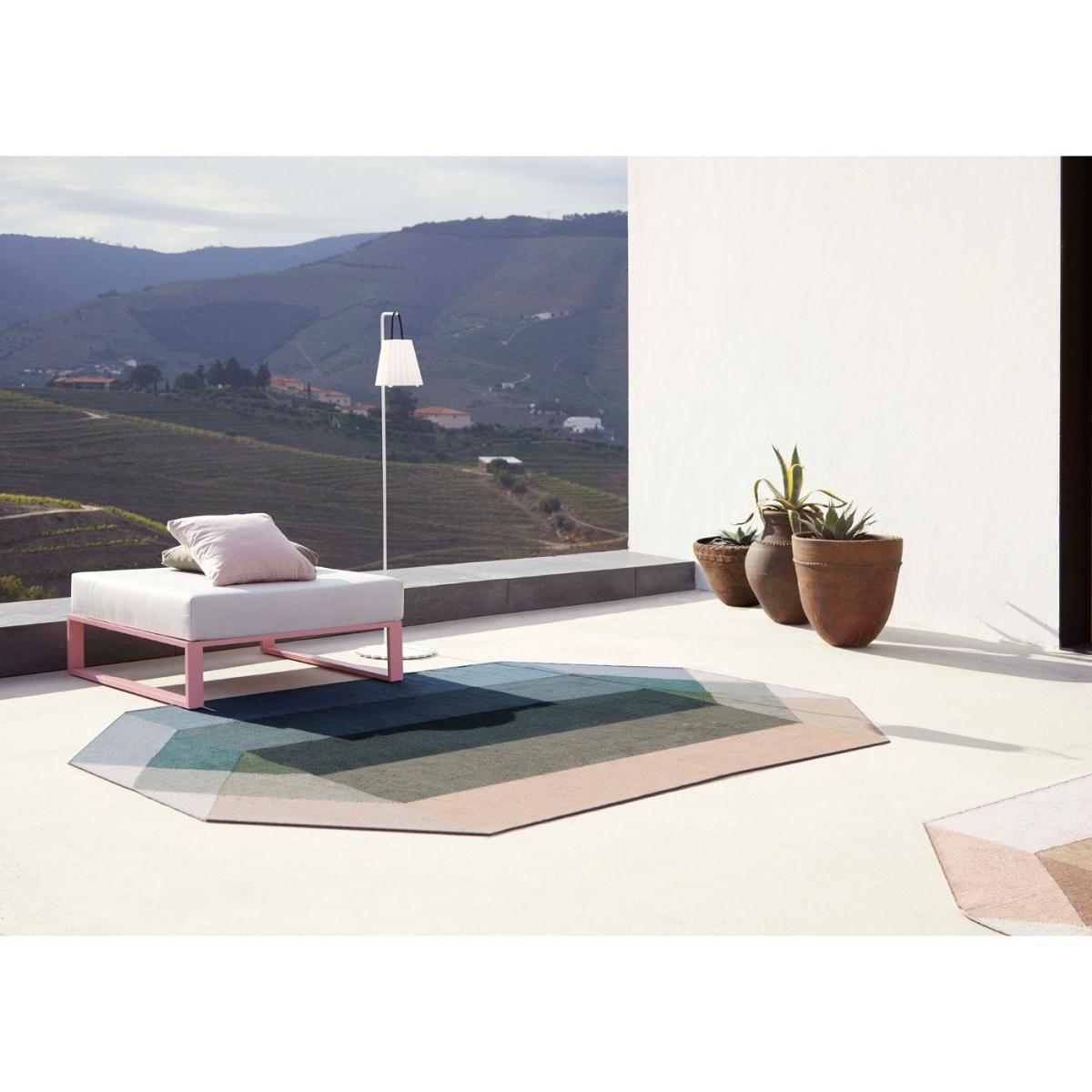 Charlotte Lancelot’s versatile nude-petrol Diamond Kilim Rug for GAN can be used both inside and outdoors. The unusually shaped rug takes the form of an octagon and is woven entirely from recycled PET fibres. Although these fibres are synthetic and made using plastic, they’re incredibly soft to touch and ideal for rugs. Through this sustainable production method, GAN is breathing new life into plastic waste.