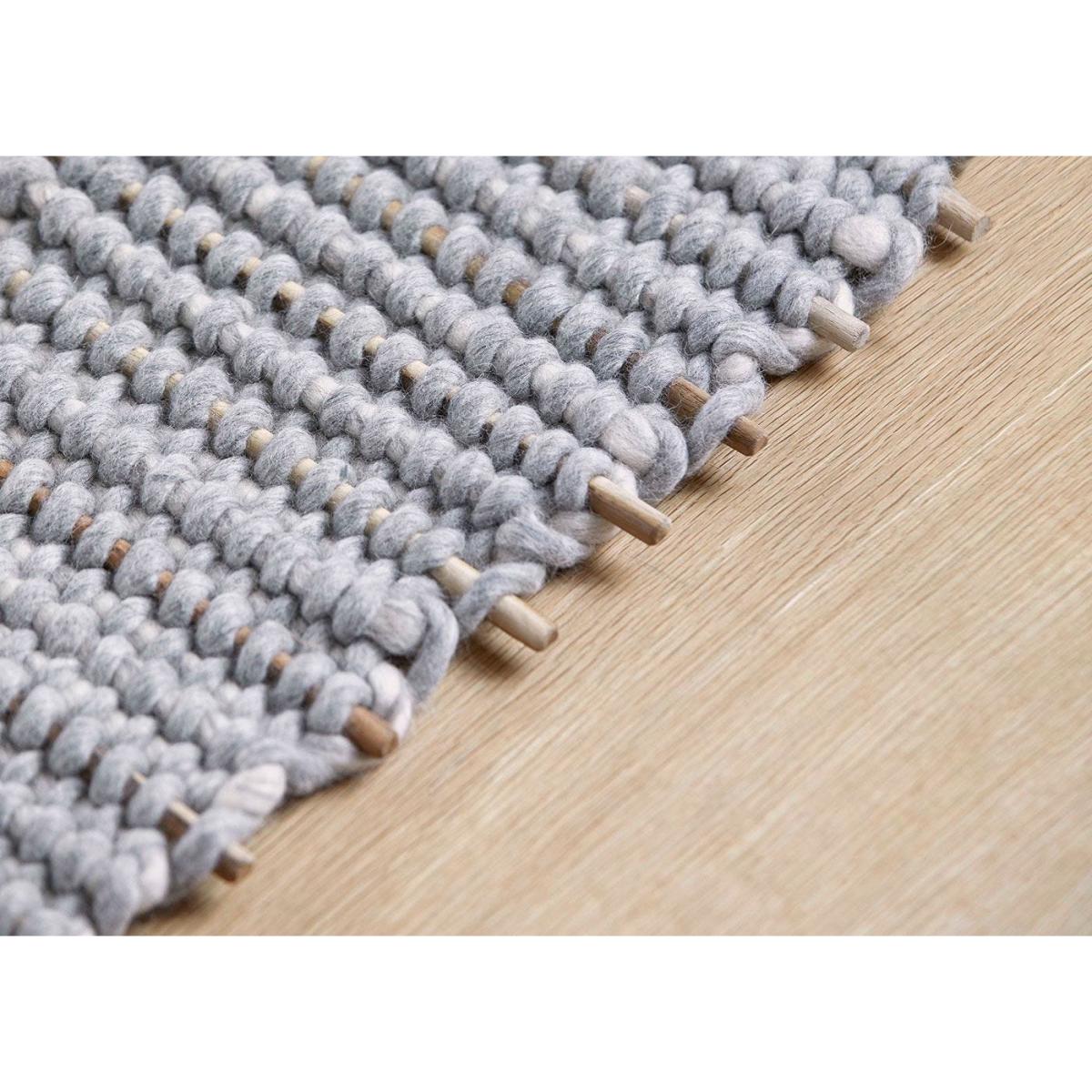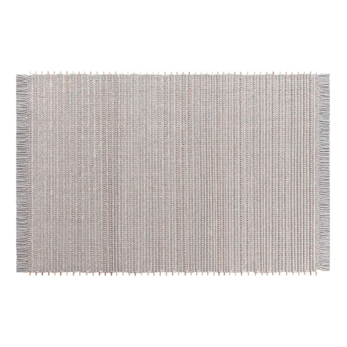 Designed by Kengo Kuma. On a manual loom, expert craftsmen insert teak wood rods that are circular, semicircular, or square in section into a framework of undyed virgin wool. Composed of three rugs, Tsuchi, Kiri and Ame which are terms for fog, rain, and soil in Japanese. The collection extols the genuine beauty of handmade objects and focuses on the coexistence of materials in nature.