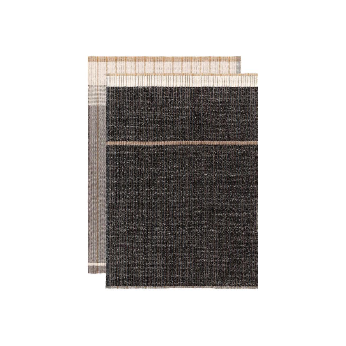 Charlotte Lancelot offers a new and complex hand-looming technique, specially developed for this collection, combines threads of different thicknesses and materials, weaving the two finishes of the Reversible Rug at the same time. The wool used to create the collection offers high-quality texture and warmth, the mix of linens is a ‘breath of fresh air’, and feels light and fresh on the feet when temperatures rise.