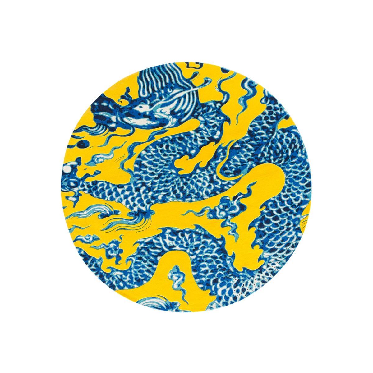 Replicating mythical Chinese iconography through modern textile craft, the China rug is a decorative centrepiece suited to any modern living space. Made from pure wool, the dragon pattern is created through an intricate process of embroidery stitching that is outlined by fluffy hand tufted threads.