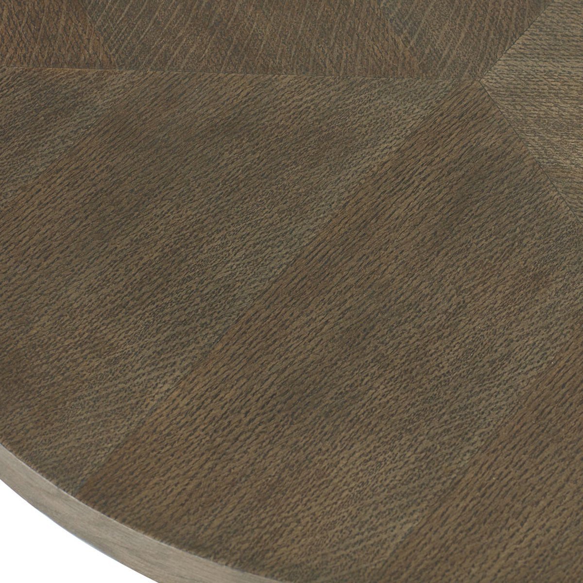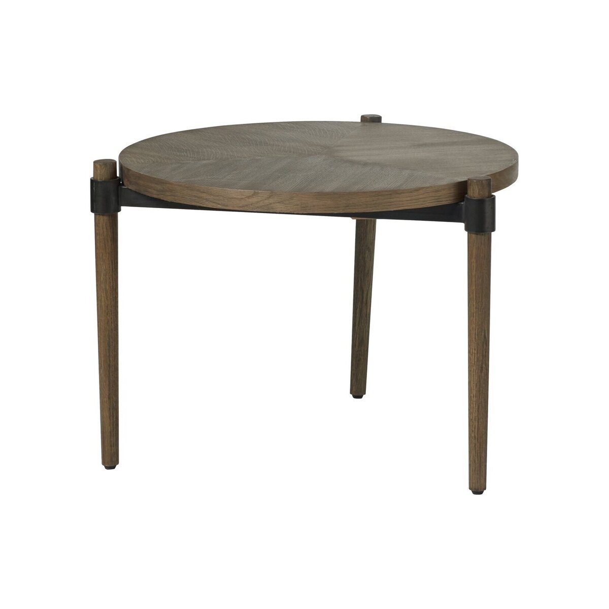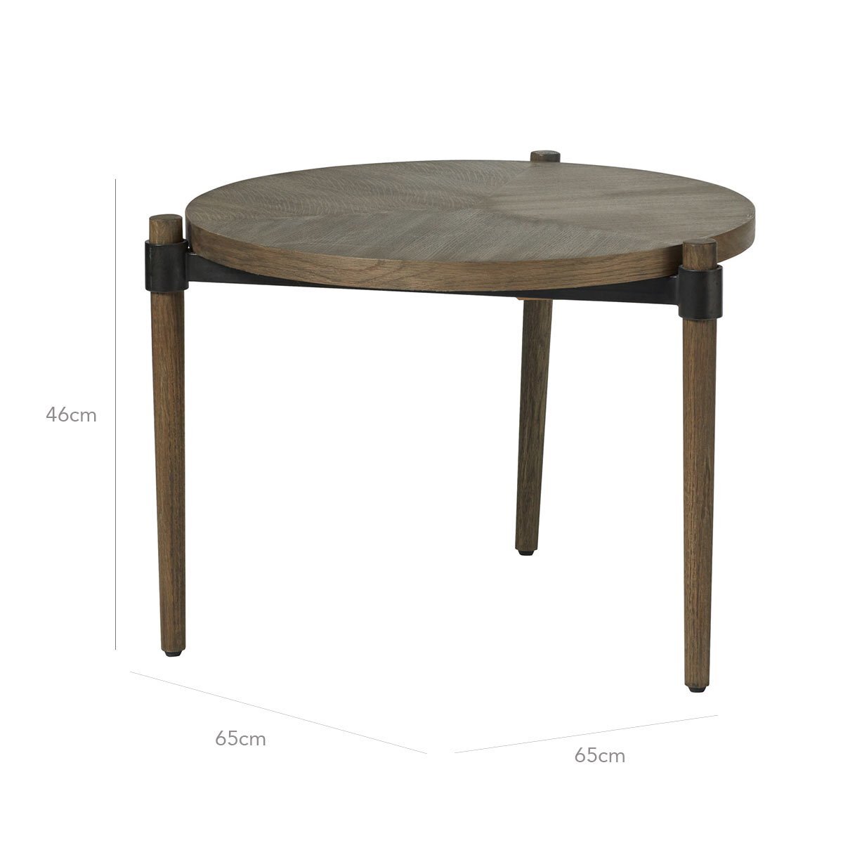 Defined by its striking three-legged design, the Garasu is named after a mythological tripodal raven. Featuring black metal shackles set against a natural oak grain, this coffee table has a modern, industrial appeal. Garasu Side Table - Aged Bark