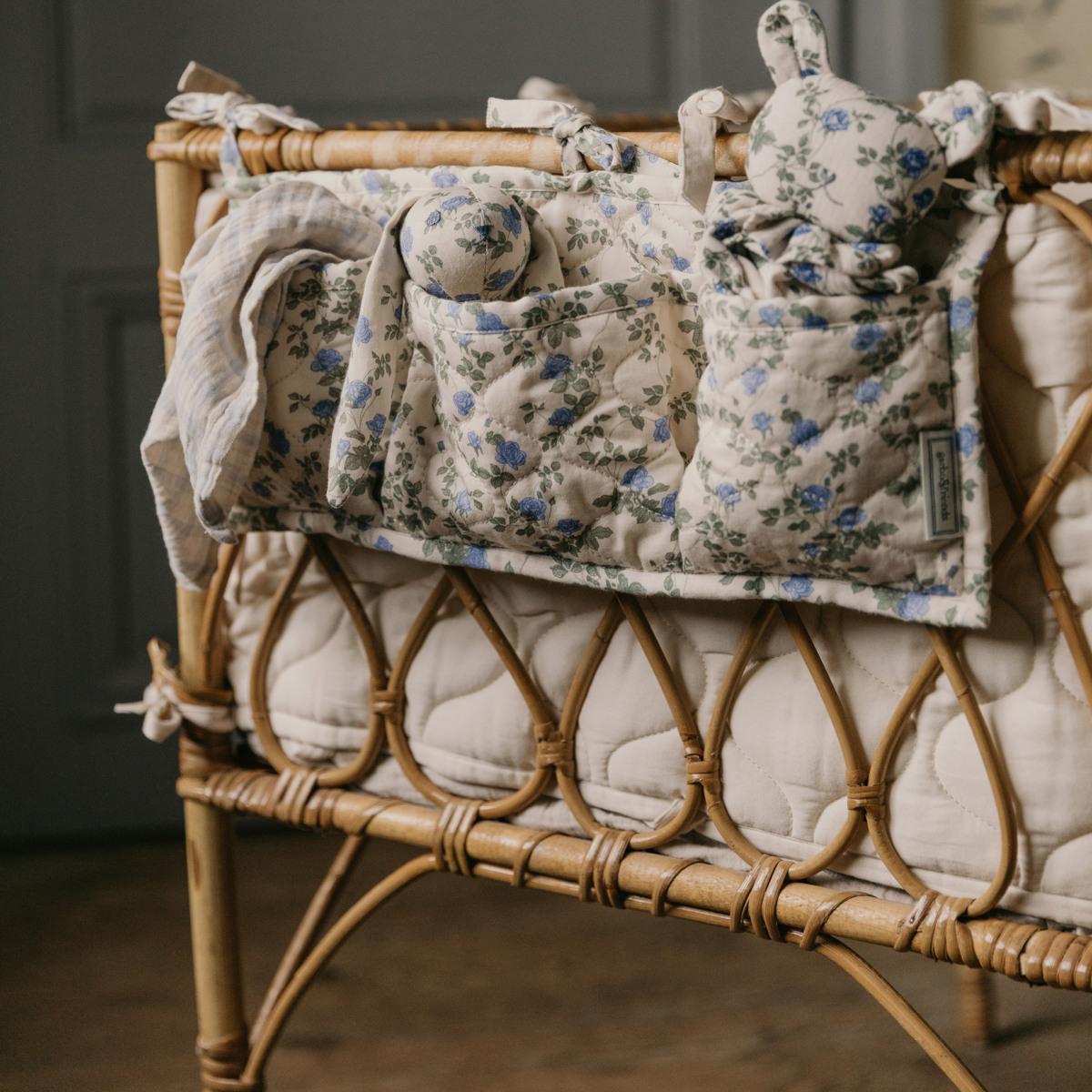 This little bed pocket is a lovely practical addition, especially in cosy nursery or child's rooms. I love its charming satin quilted finish, which adds a touch of softness and subtle luxury without feeling frilly. It works well in both Nordic-inspired minimal interiors and more classic, country-style spaces, providing smart storage for bedtime essentials like books, small toys or personal items. For styling, place it on the side of a bed or a cot, tying the ribbons neatly to personalise the look. Pair it with light, neutral bedding or soft pastels to keep the space calm and inviting, and it’s a great way to keep everything organised without cluttering up the room.
