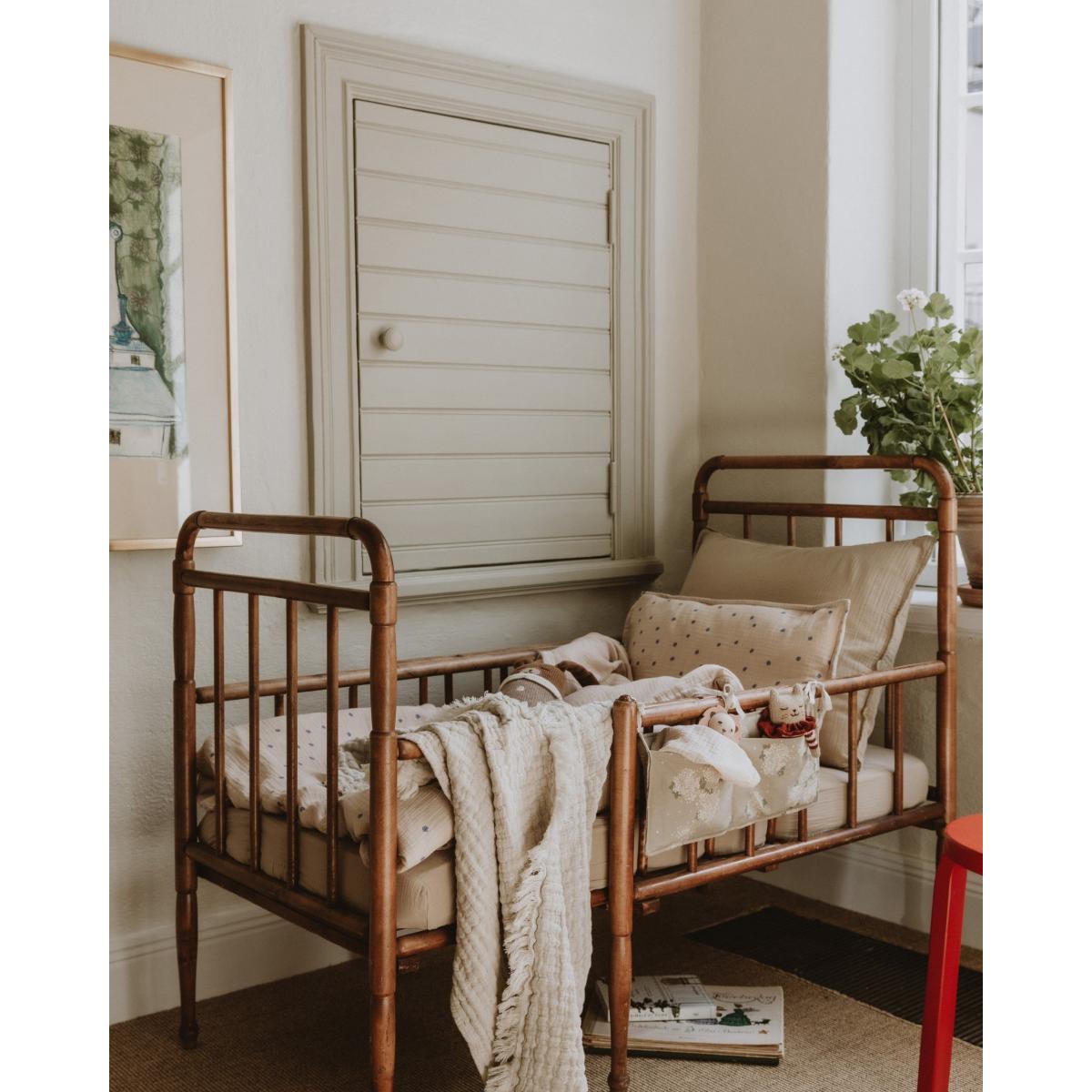 I love this Garbo&Friends throw for its cosy yet refined appearance, owing to its neutral hue and textured fabric. It’s versatile enough to add warmth to a nursery, a cosy corner in a living room, or even draped over a bed for extra layer and visual interest. Its subtle pattern and soft, plush feel make it a great choice for creating a relaxed, inviting atmosphere. Practical styling tips include folding it neatly over the end of a sofa or bed for a sophisticated touch, or using it to add contrast in a minimally decorated space by pairing it with other tactile textiles. It’s a functional piece that also acts as a decorative element, making everyday spaces feel more lived-in and welcoming.