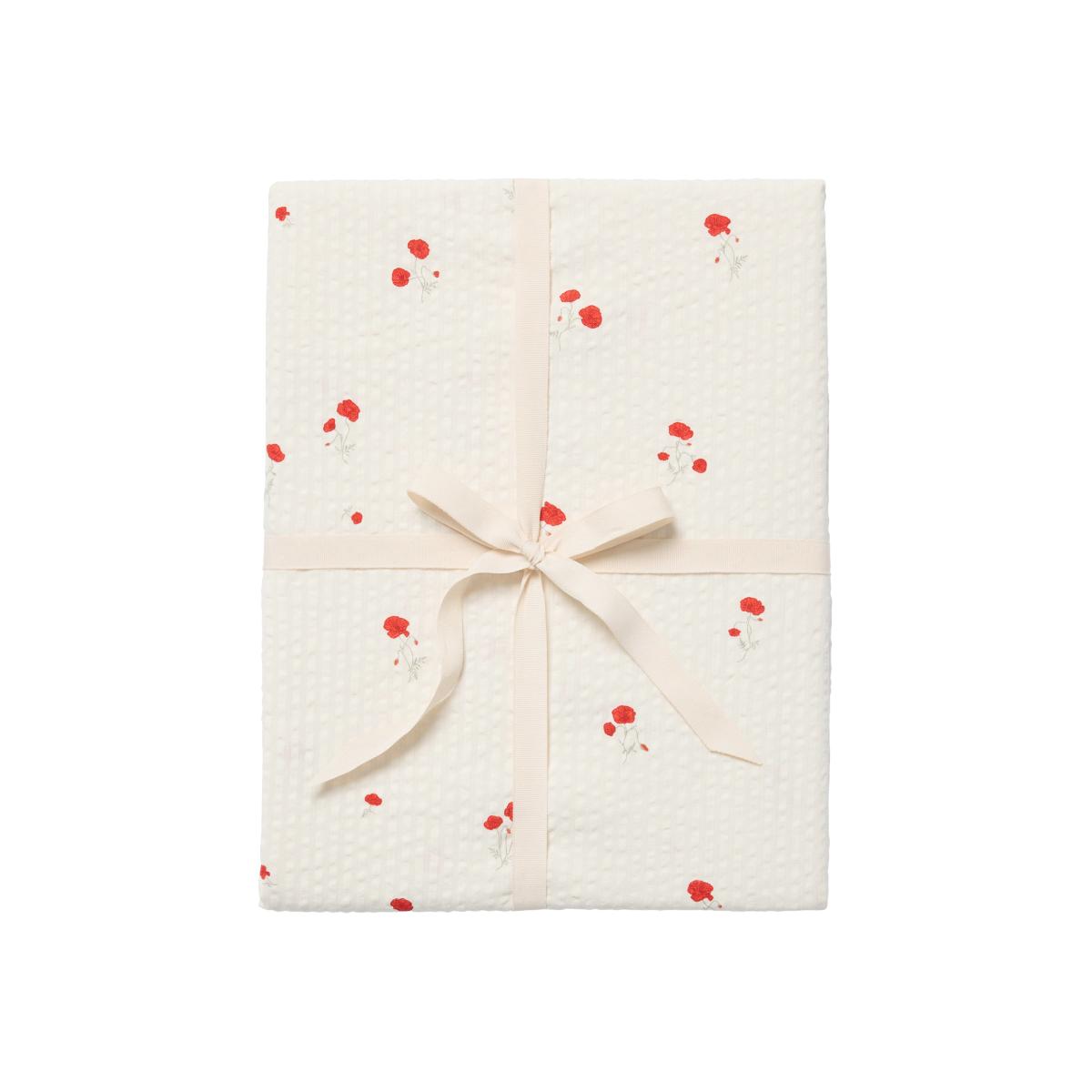 This little sheet is a charming addition for nursery or children's rooms, especially if you favour a soft, playful aesthetic. I love it because of its subtle yet cheerful poppy pattern and crisp seersucker texture, which adds a touch of sophistication while remaining informal and cosy. It works well in both Scandi-inspired interiors with neutral palettes and more colourful, eclectic schemes. For styling, consider pairing it with complementary bedding in muted tones or gentle pastels, and incorporate natural textures like wood or rattan to enhance the relaxed feel. Its size and pattern make it versatile for a cot or toddler bed, creating a charming, restful space with a touch of personality.