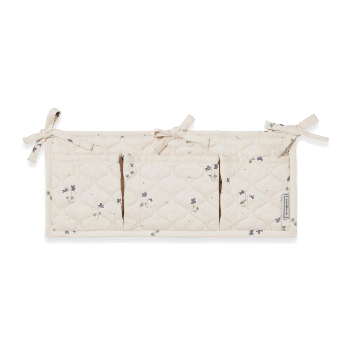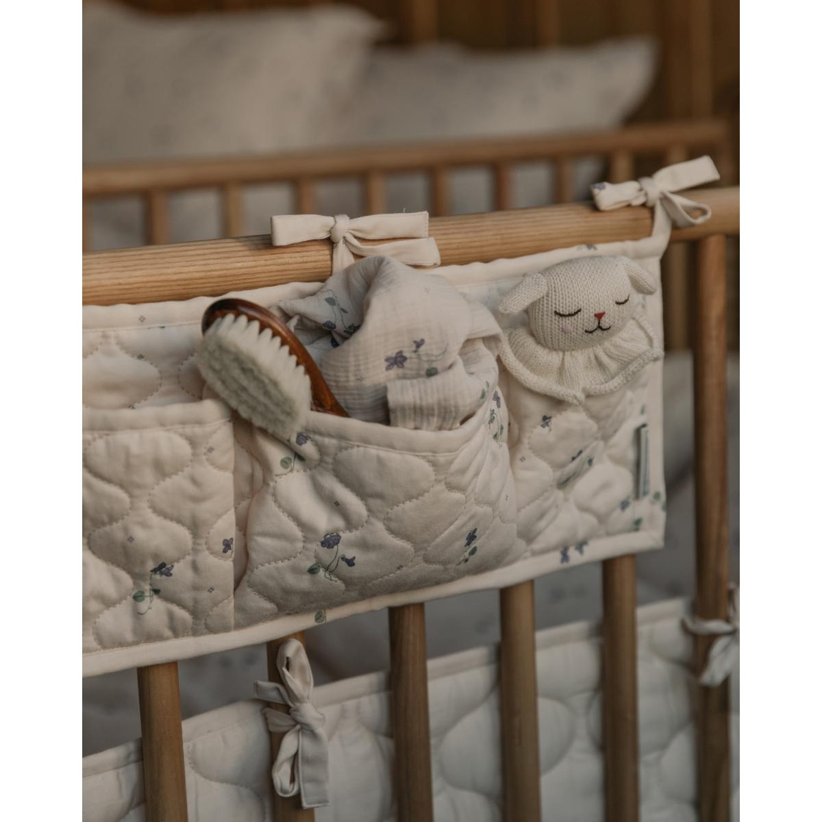 Viola Satin quilted bed pocket from Garbo&Friends combines function and aesthetics in an elegant bed storage. It is made of organic cotton satin and has three practical compartments for pacifiers, bibs, or other necessities. Easy to attach to the crib and perfect for keeping things organized.
