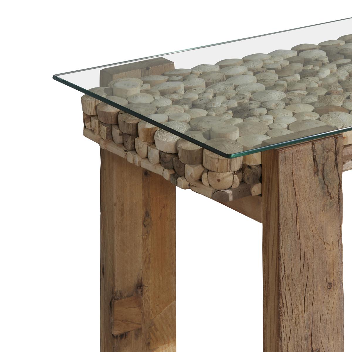 The Garcia Console Table is the perfect statement piece to add to any room in your home especially in a hallway or living room. Featuring a clear glass top which allows you to appreciate the true beauty and texture of the driftwood underneath. As well as being a functional piece of furniture which is ideal to place a lamp and decorative pieces on, each console table is unique and a truly striking focal point to add to your home.