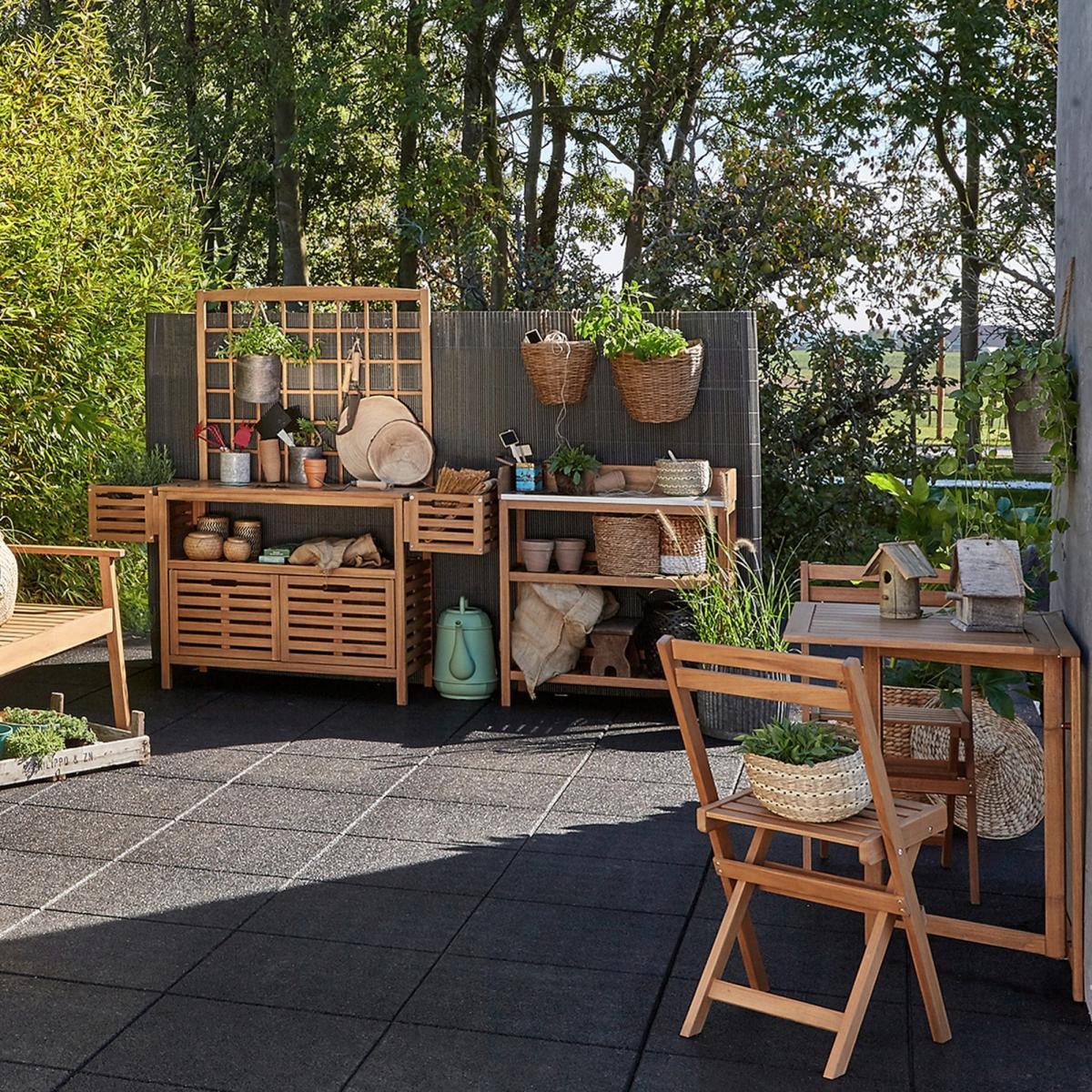Featuring a wall mounted drop-top table and 2 folding chairs, this Garden set is ideal for small spaces, balconies and small terraces. Folded, it saves space and facilitates storage.