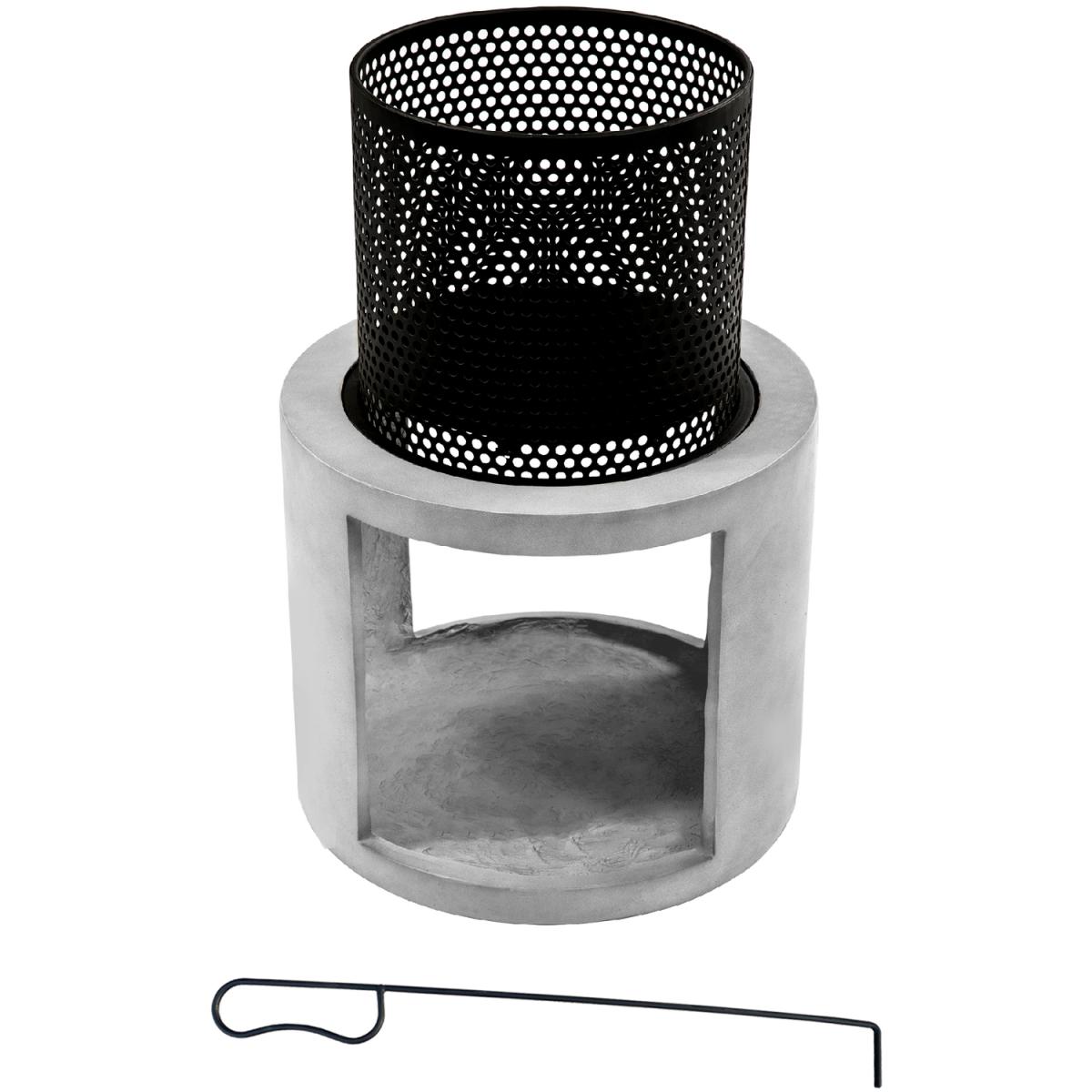 Bring style and warmth to your outdoor area with the Teamson Home small outdoor 40 cm wood burning fire pit with a log storage base. This outdoor fire pit features a modern cylindrical shape and concrete-style base to add warmth and ambience to your backyard, patio, deck, garden, or any outdoor space. This versatile wood burner fire pit is designed with an open base to offer storage for extra logs so you can keep the fire going all night. This wood fire pit includes a mesh spark screen, poker, and touch-up paint with a brush for everything you need to maintain and operate it. The durable weather-resistant design with a sturdy base prevents the garden log burner from tipping or falling over, even in harsh and windy weather conditions.