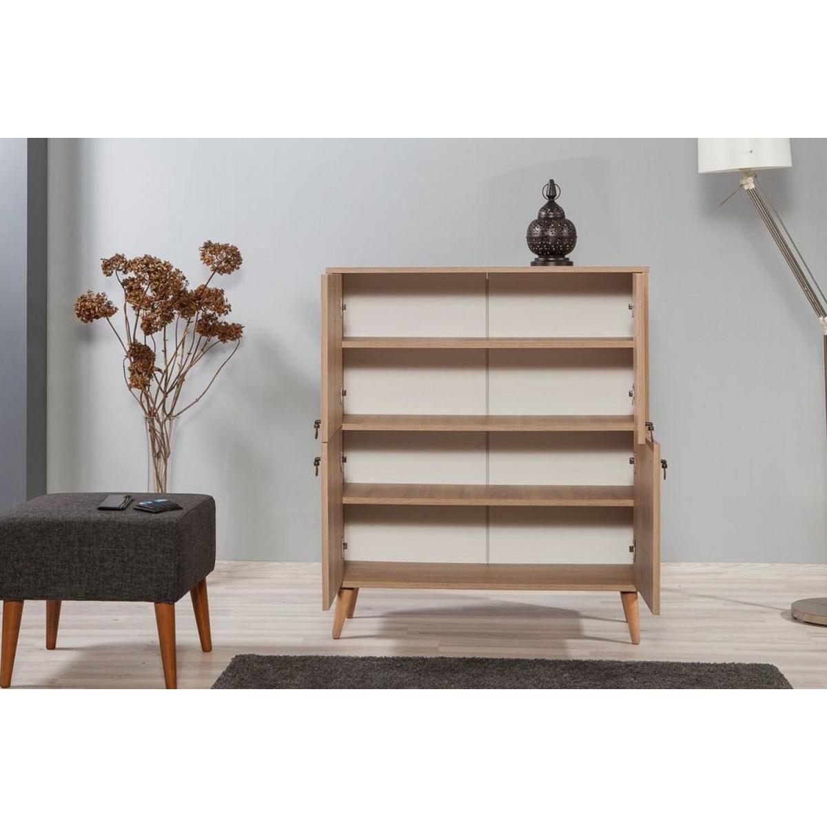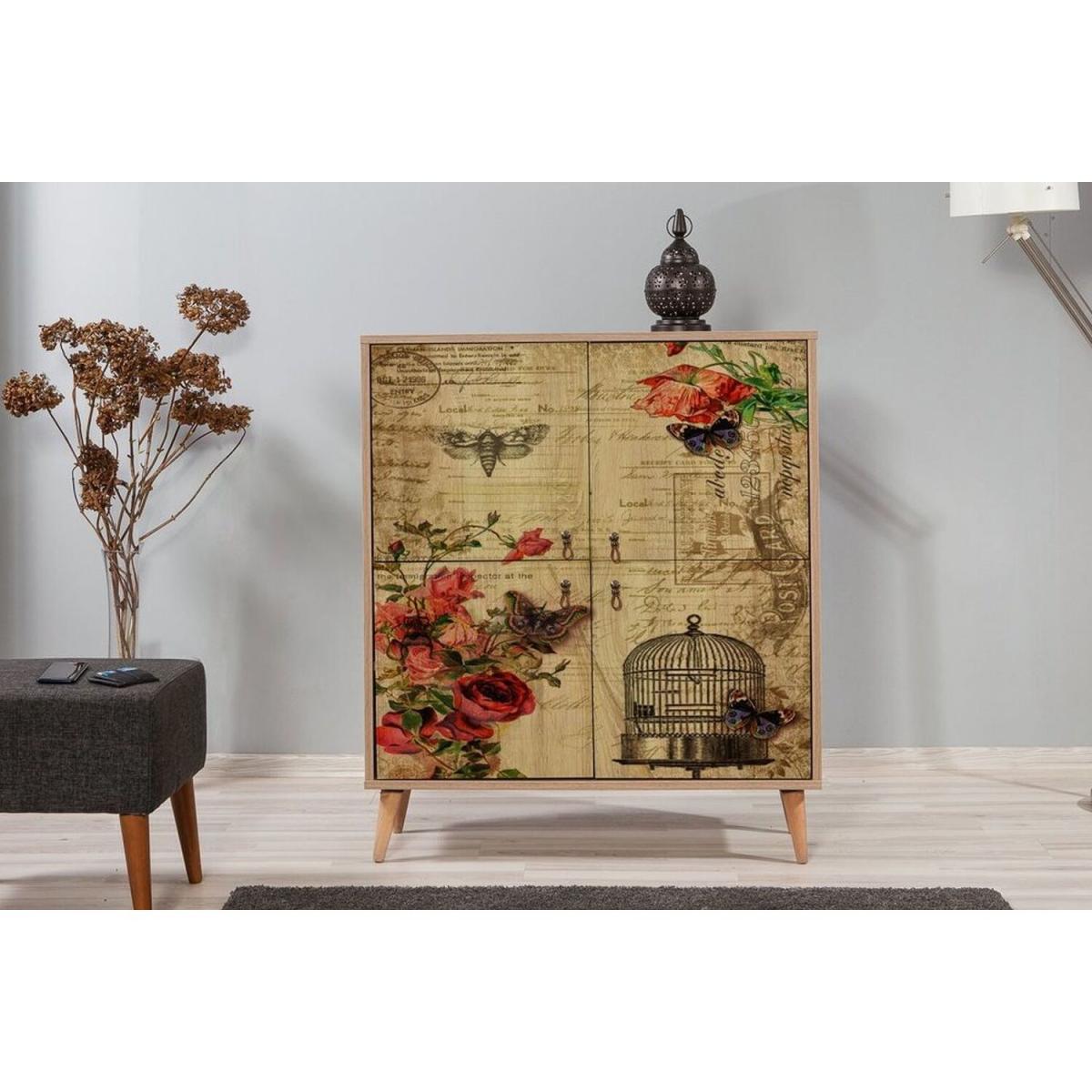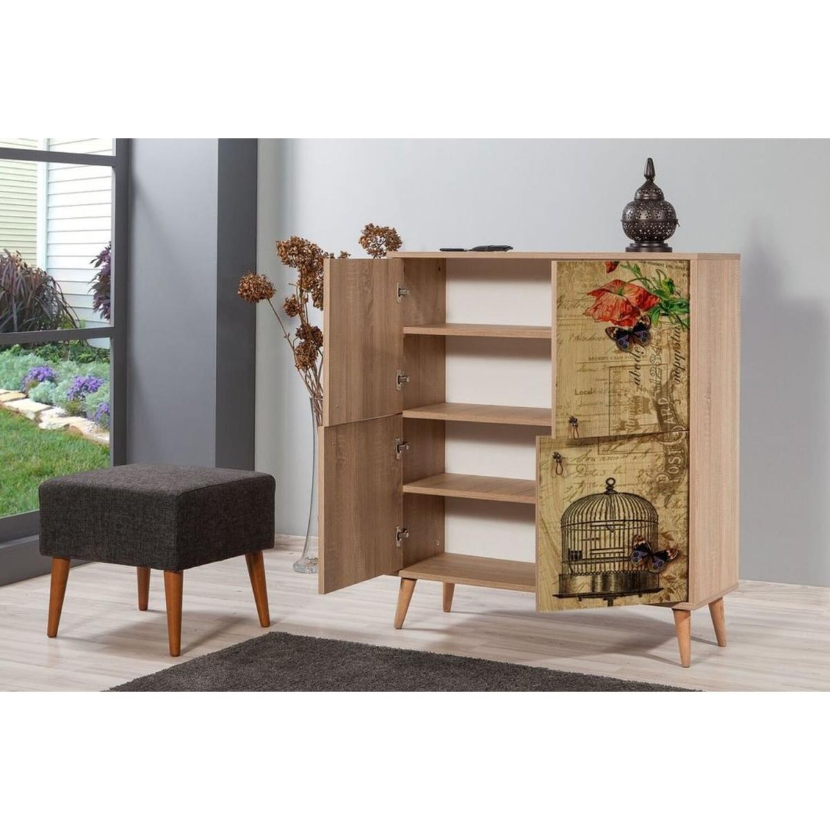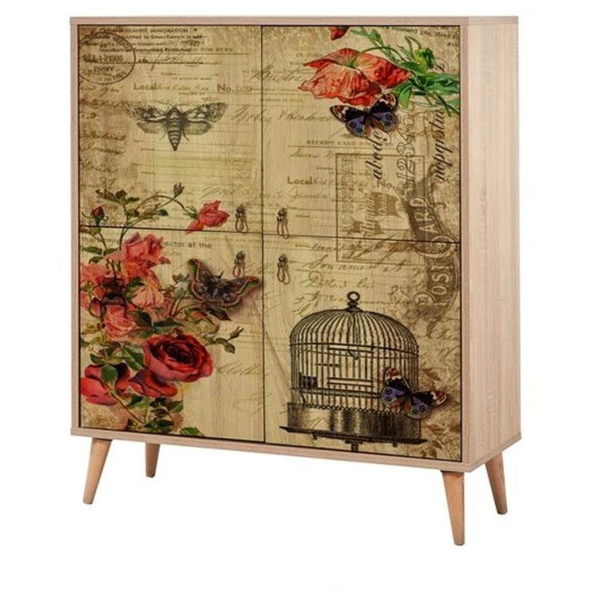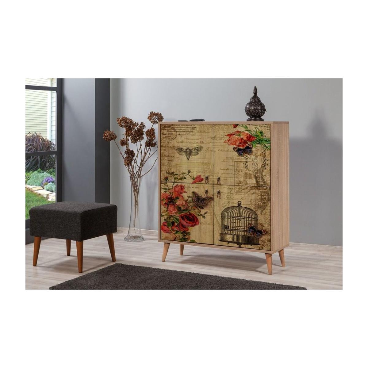 This sideboard has an elegant and functional design. It has 4 doors and 4 shelves that offer ample amount of storage space for your needs. The doors have a madame-themed design made using ultraviolet digital printing technique. This technique increases the durability of the pattern against scratches and fading.