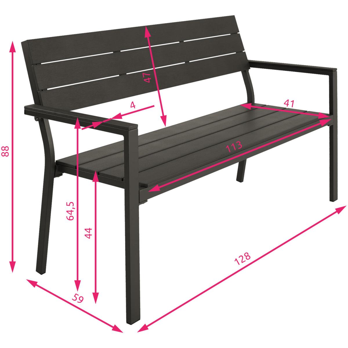 Garden Bench 2-Seater With Aluminium Frame - Dark Grey