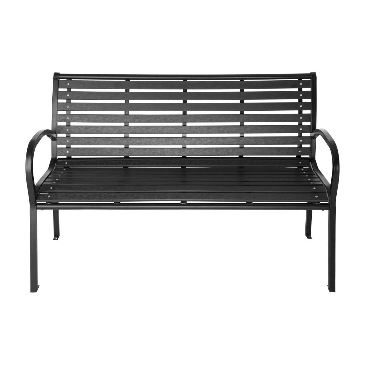 This inviting garden bench with curved armrests from tectake will make an attractive and inviting feature in your outdoor space. This generously sized seat can accommodate up to three people and looks great on a patio or balcony. The stable steel frame with a protective varnish and the durable plastic slats guarantee robustness and long life. Assembly is quick and easy and can be completed in just a few steps. This dirt-repellent bench can simply be cleaned with a damp cloth, making care and maintenance easy. Add this metal, 3-seater garden bench from tectake to your outdoor home furniture and enjoy lazy afternoons in the comfort of your own garden.