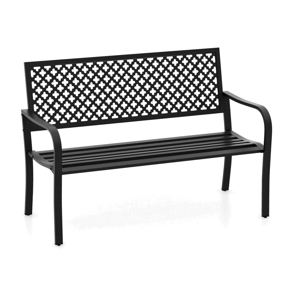 Turn your garden into a peaceful retreat with our beautifully crafted outdoor bench! Featuring a hollow-out backrest with exquisite patterns, this garden bench adds a touch of elegance to any outdoor space. Designed for maximum comfort, the bench is equipped with curved armrests. Plus, the slatted seat design allows for excellent air circulation and prevents water accumulation. Made of a sturdy metal frame and adjustable foot pads, this outdoor bench offers outstanding stability and durability, supporting up to 300 kg effortlessly.