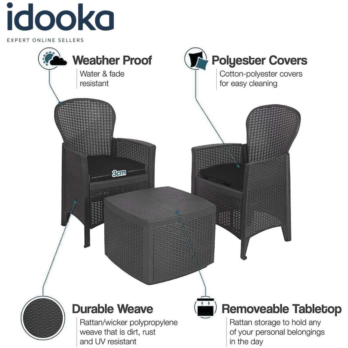 Garden furniture that is simply attractive is not enough. It must also enhance your life and provide comfort. The idooka garden furniture set achieves this by allowing you to relax and unwind while reading a magazine from the storage table. The furniture is sturdy, durable, and requires minimal upkeep, making it an ideal choice. We have spent countless hours lounging with our feet up and enjoying some much-needed rest and relaxation. The chairs are both cozy and compact, suitable for even small balconies, while the table provides convenient storage space for anything you might need. Its durability also allows you to rest your feet on it without worry. It's important to have furniture that is hassle-free and straightforward, especially when we need a break from our busy lives.
