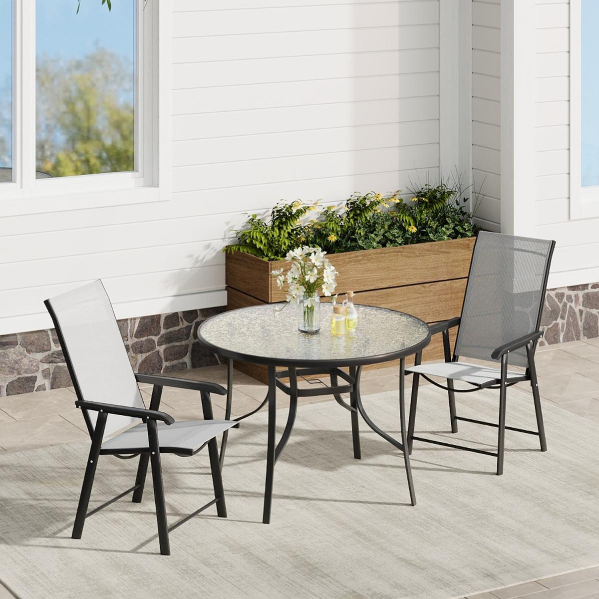 Garden Bistro Set with Round Table and Folding Chairs - Black / 1 x Round Glass Table and 2 x Foldable Chairs
