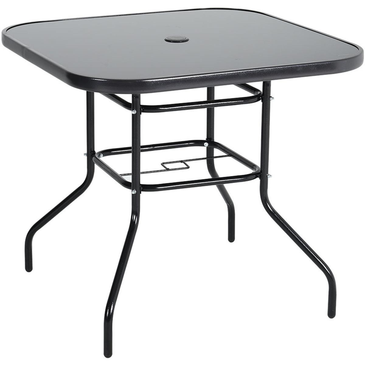 This garden bistro set is a versatile piece that works well in both contemporary and classic outdoor spaces. I love how its black finish offers a sleek, minimalist look that can seamlessly complement various colour schemes and textures. The umbrella hole adds practical shade during sunny days, making it ideal for al fresco dining or relaxing with friends. For styling, consider pairing it with neutral or patterned outdoor cushions to introduce some texture and comfort, while adding potted plants or lanterns can elevate the overall ambiance. It's perfect for small patios or balcony gardens where space efficiency and understated elegance are key.