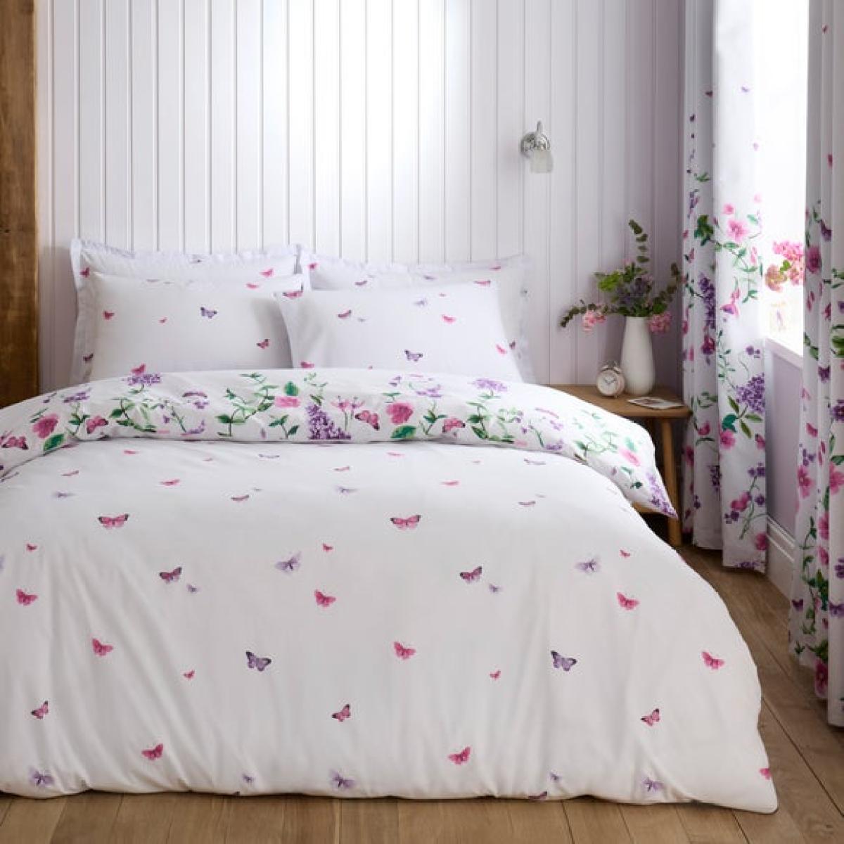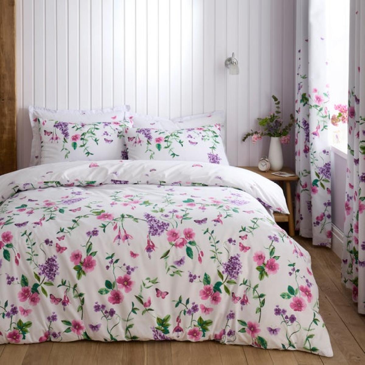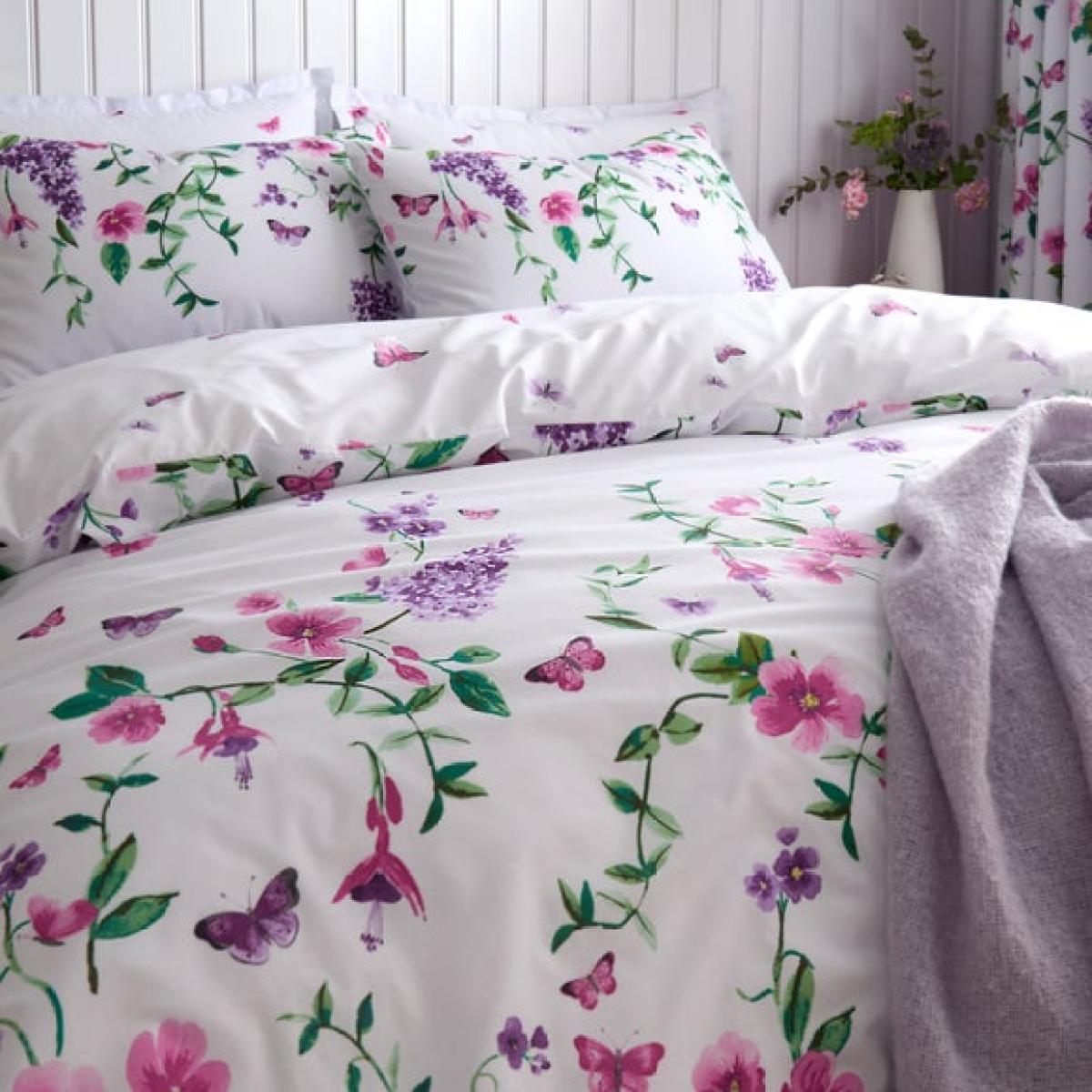 * Floral design * Printed polycotton * Reversible * Machine washable The Garden Buddleia Bedding Set features delicate florals with fluttering butterflies, perfect for creating a peaceful, garden-inspired sanctuary. Easy-care polycotton ensures it’s as practical as it is pretty.