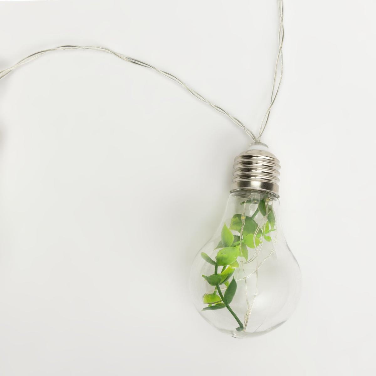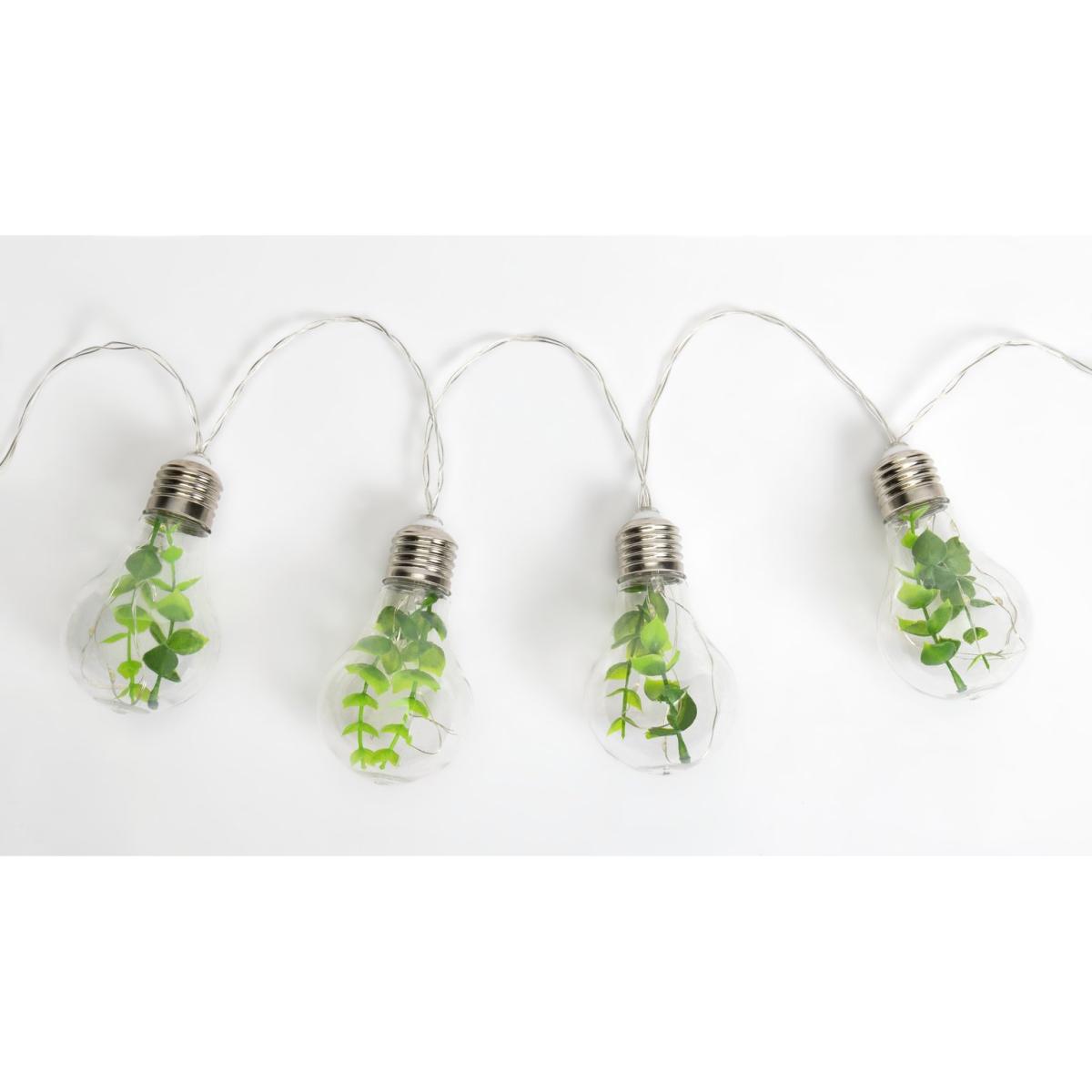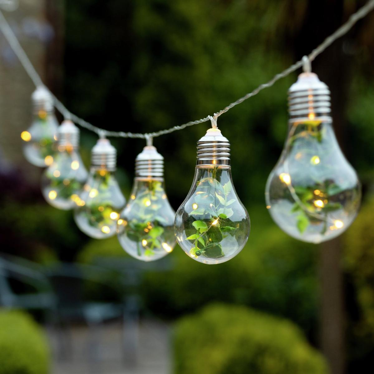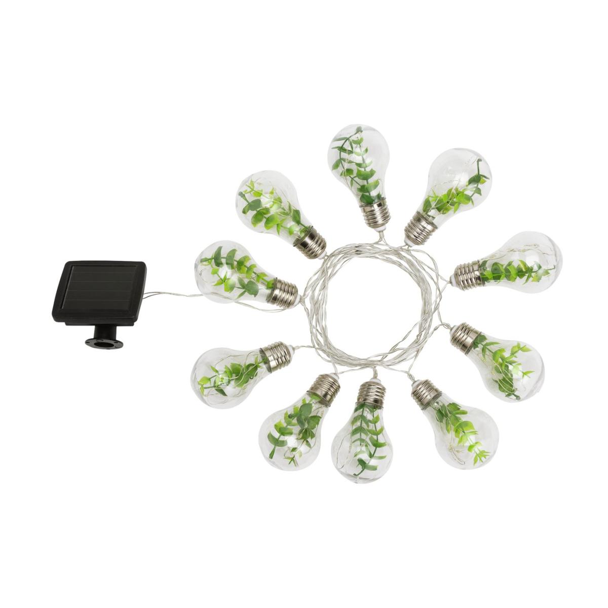 Enjoy al fresco dining or add sparkle to your parties with these shining solar lights. Filled with bright green sprigs and emitting a warm white light, they look the business draped over a branch or along a fence. 10 cheery bulbs per string. What's not to love on summer evenings. Why not add to the ambience with some outdoor lanterns or comfy cushions. Solar powered. On and off switch. Automatically turns on at dusk. Battery is recharged via the solar panel. Requires 1 x AA battery (included). Requires 50 x LED bulbs (included). Total length 3.8m , cable length to first bulb 2m , lit length 1.8m , bulb spacing 20cm. Warm white light emitted. Clear cable. Suitable for outdoor use. 44 IP rating. 1.2 voltage. Store indoors in winter months. 1 year manufacturer's guarantee.