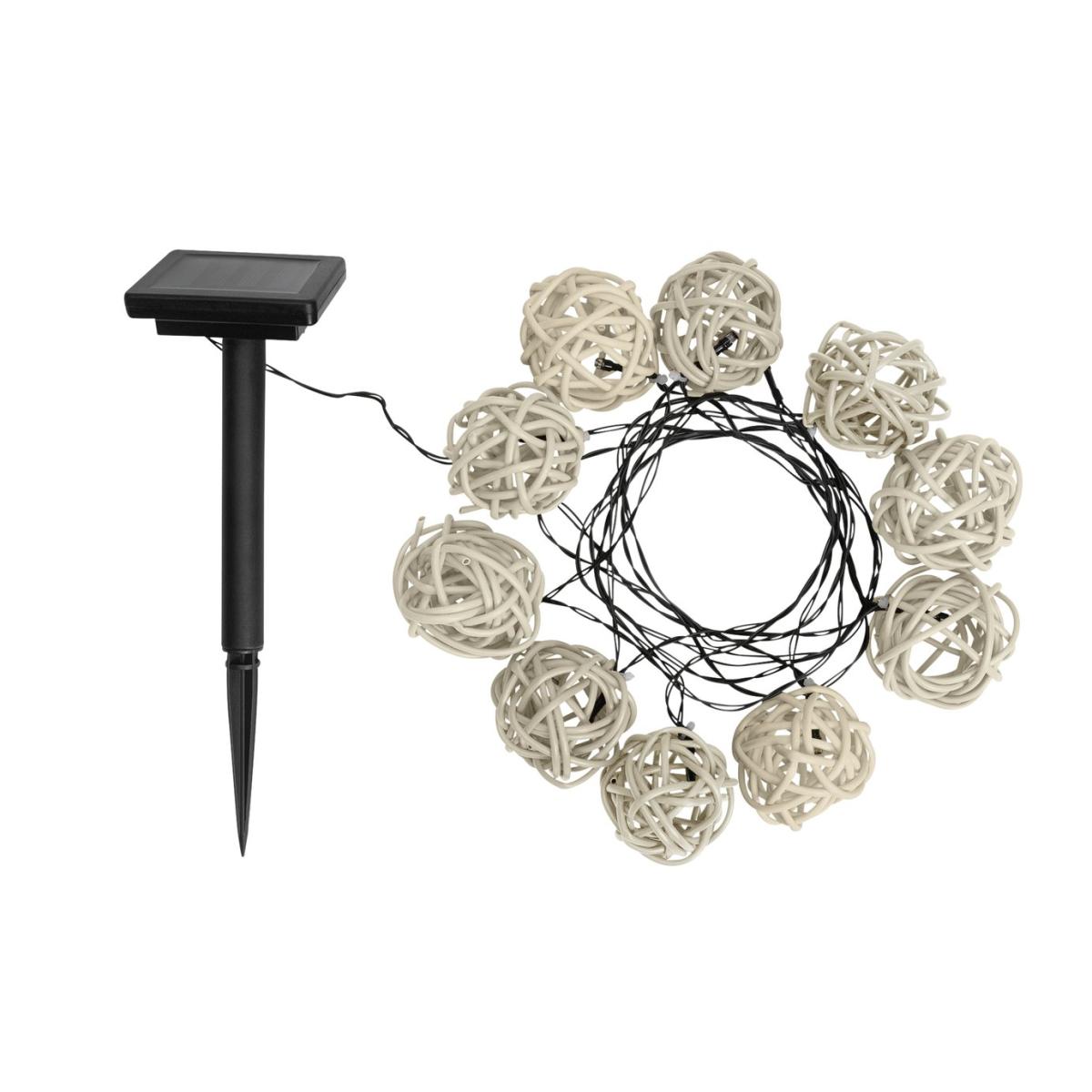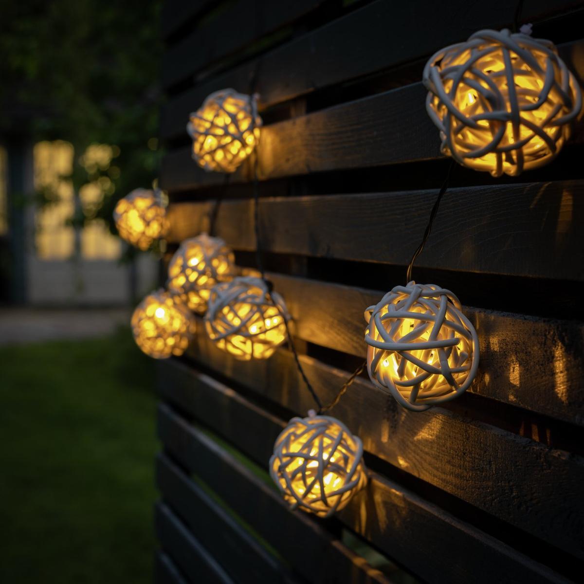 These solar powered string lights will feel right at home draped over a fence or woven through tree branches. There are 10 colourful faux wicker toppers, each housing a warm white solar bulb. Just pop the solar power stake in a sunny spot and you're ready to add some after dark enchantment. These outdoor string lights will automatically turn on at dusk and work for up to 6 hours when fully charged. Solar powered. On and off switch. Automatically turns on at dusk. 6 hours run time if fully charged. 8 hours of full sun light required to fully charge battery. Battery is recharged via the solar panel. Requires 1 x rechargeable battery (included). Requires 10 x LED bulbs (included). Total length 3.8m , cable length to first bulb 2m , lit length 1.8m , bulb spacing 20cm. Light size: H 5.5cm , W 5.5cm , D 5.5cm. Warm white light emitted. Suitable for outdoor use. 44 IP rating. Store indoors in winter months. 1 year manufacturer's guarantee.