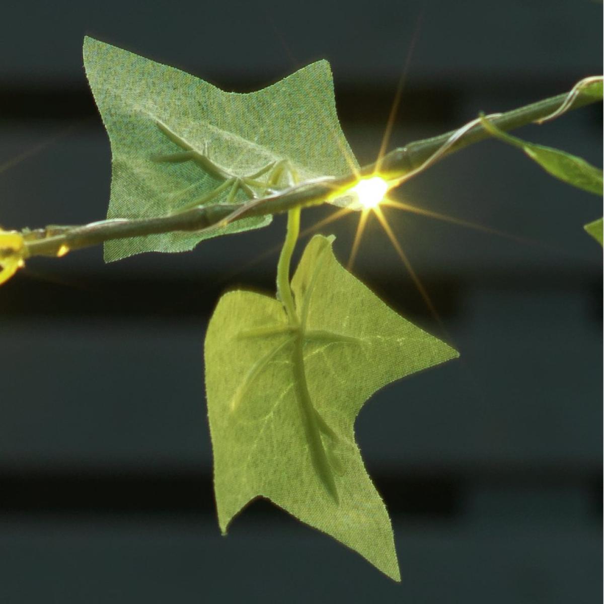 Illuminate those summer evenings with these 20 string lights. Adorn your garden with a decorative ivy garland, while the LED bulbs emit a warm white glow. All you need to do is set up these solar powered lights somewhere outside, and let the sun do its work. And with no wiring or battery charging required, it's simple, quick and safe to install. Solar powered. On and off switch. Automatically turns on at dusk. 7 hours run time if fully charged. 8 hours of full sun light required to fully charge battery. Battery is recharged via the solar panel. Requires 1 x rechargeable battery (included). Requires 20 x LED bulbs (included). Total length 4m , cable length to first bulb 2.2m , lit length 1.8m , bulb spacing 10cm. Warm white light emitted. Suitable for outdoor use. 1.2 voltage. 1 year manufacturer's guarantee.