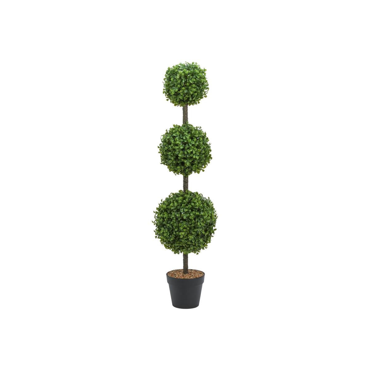 Want to know the secret to showing off a gorgeous bit of year-round sculptured greenery? Fake it. This triple topiary tree will do the trick. Standing at over 3.5 ft high, 3 perfectly clipped balls of artificial foliage sit on a natural looking trunk. And the pot is topped with pebbles to add even more realism. Treemendous. Everlasting and evergreen, this beautiful botanical can brighten up an outside space as well as the inside. Imagine a pair either side of your front door. Look impressive, don't they? If you want to get your hands on more fuss-free faux foliage, you're in the right place. We've lots to add to your collection. Plant composition: polyethylene. Pot composition: polyester. Size H110.5, W28, D28cm. Pot size: H14, W12,. Pot top diameter: 18cm. The overall size may vary depending on how the item is arranged.