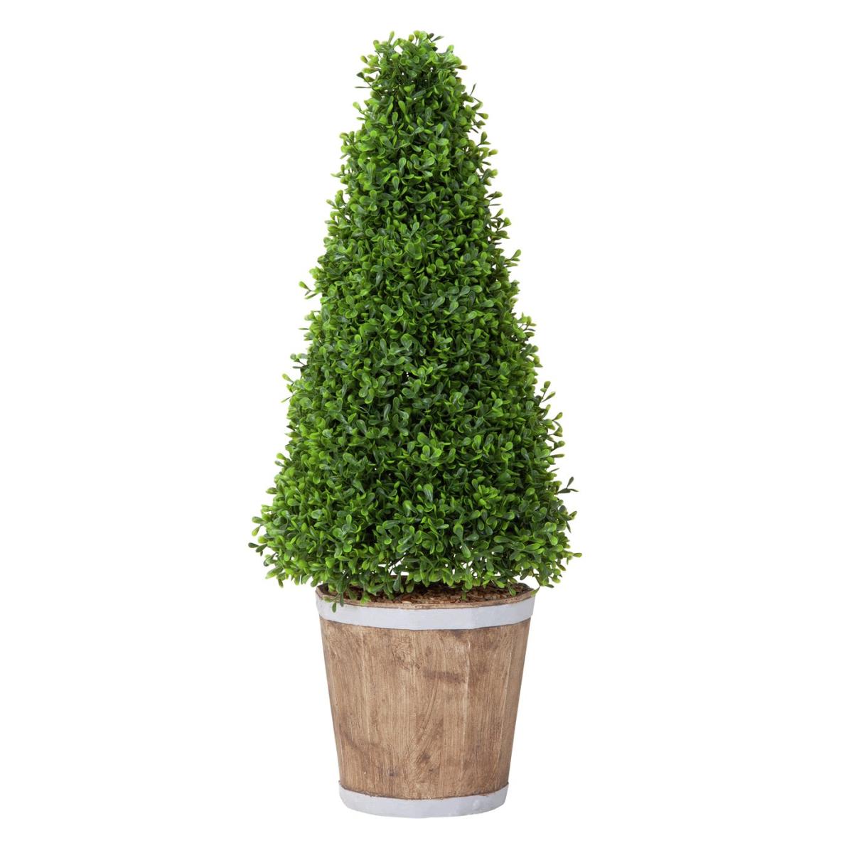 Style your space with some elegant greenery. Cone shaped and potted in a lime-washed wooden stand, this faux tall tree will look perfect on your porch or better still adorning your front door! Our favourite thing about this botanical beauty? It'll stay green all year round! And you won't even need to prune or water it. Size H74, W30.5, D30.5cm. The overall size may vary depending on how the item is arranged.