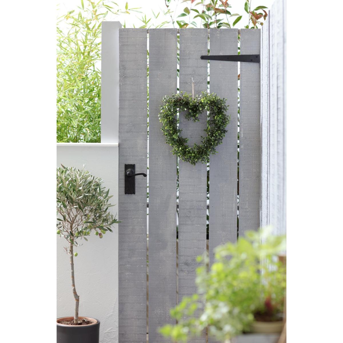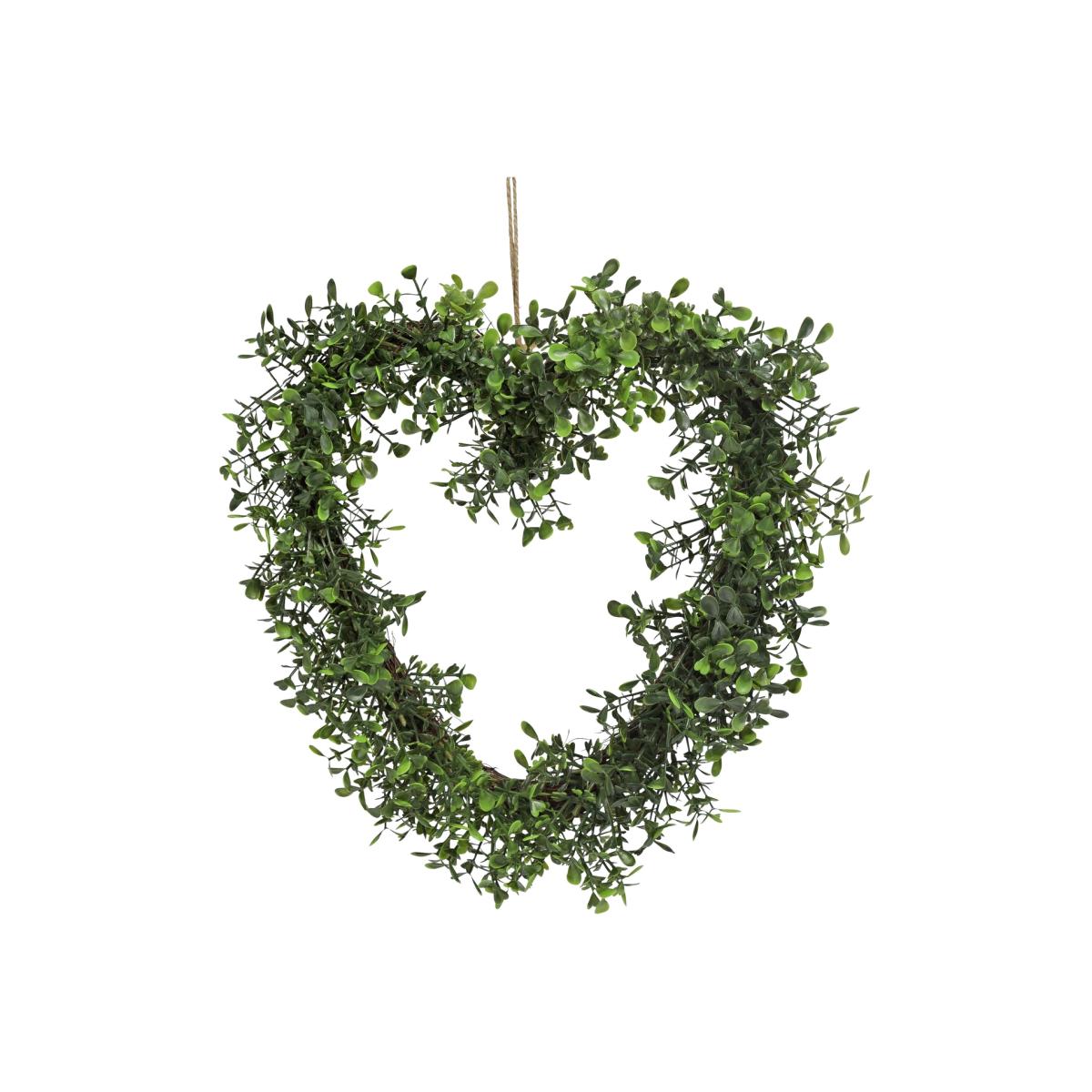 Hang it anywhere. Hearts are a much-loved decorative shape and we've created a faux topiary heart that's green and cheerful all year round. It's weather-resistant so you can hang it indoors or outside, from your garden shed, front door or trellis. It's so easy to add a bit of shabby-chic charm to your garden with this delightful hanging heart. One heart that looks after itself. No TLC required. Size H9, W38, D36cm.