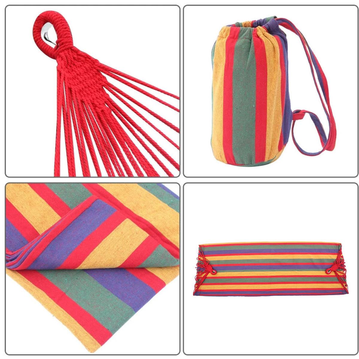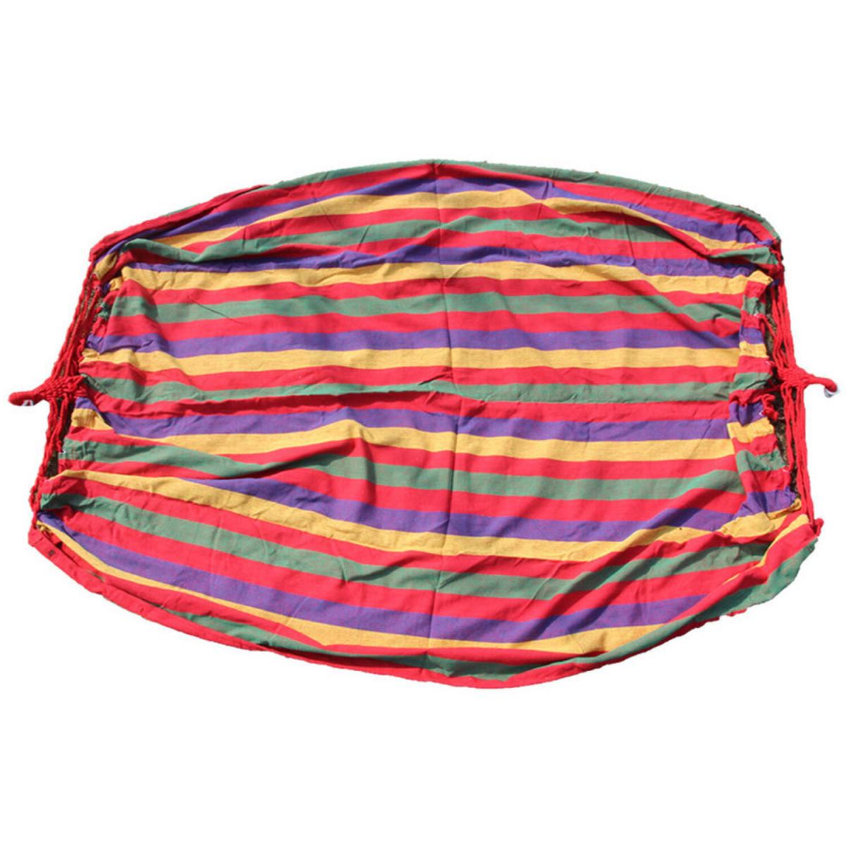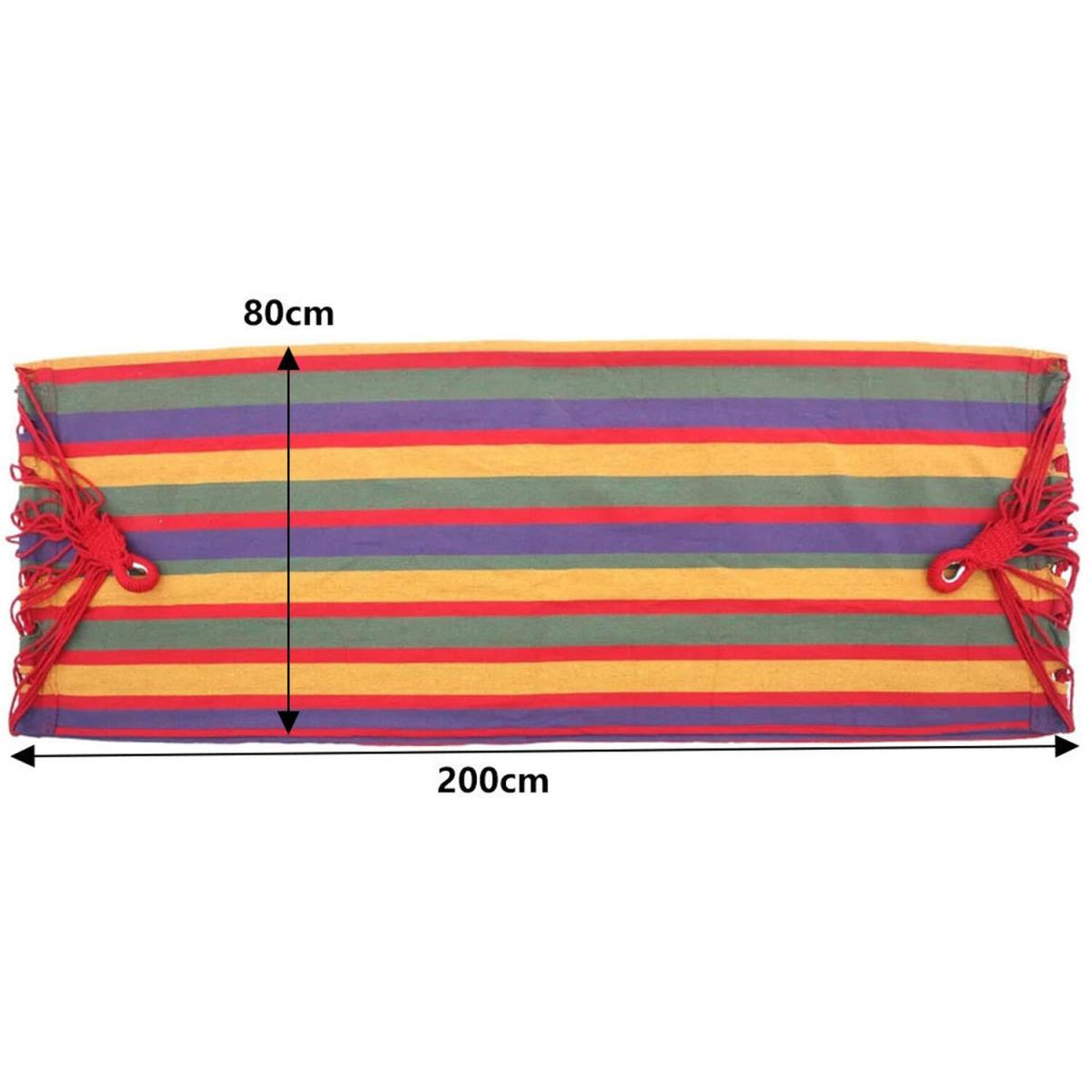 Put your feet up and fall asleep in this gorgeous cotton hammock! Great to lounge in and enjoy a spot of quiet time, this hanging hammock will help you relax at the end of a busy day. The bed has 2 durable metal chains and 18 ropes for stable fixation. Comes with a carry bag to store your hammock easily, or take it with you wherever you want. Attractive design with its strong features, it is ideal for camping, yachts, verandas, pergolas, gardens, outdoor decks and just about anywhere your heart desires - even better if there is a view to enjoy whilst in the hammock! This durable quality hammock would make the perfect gift for anyone.