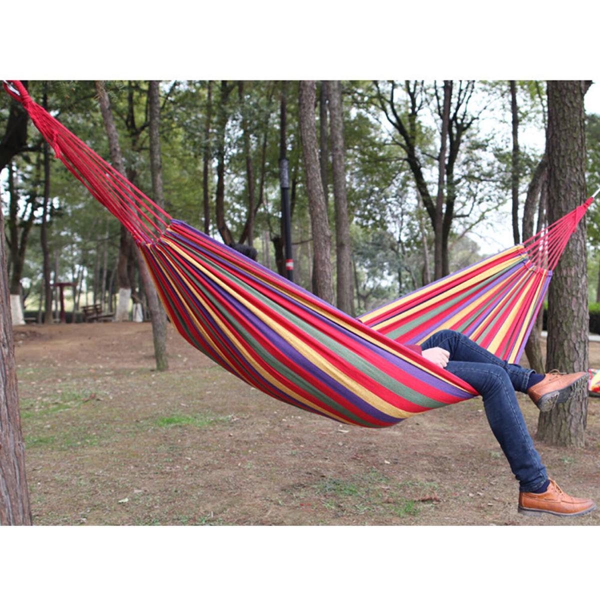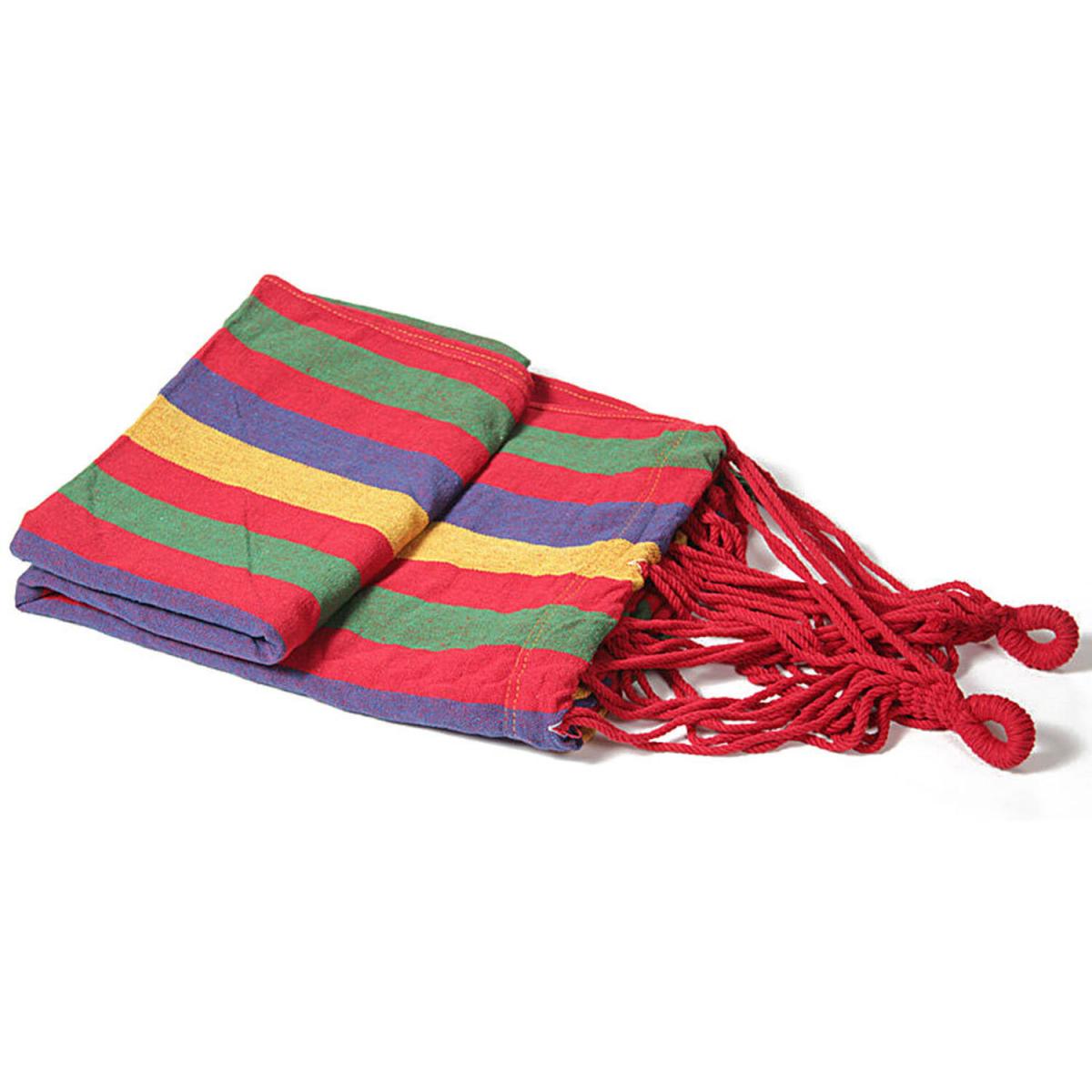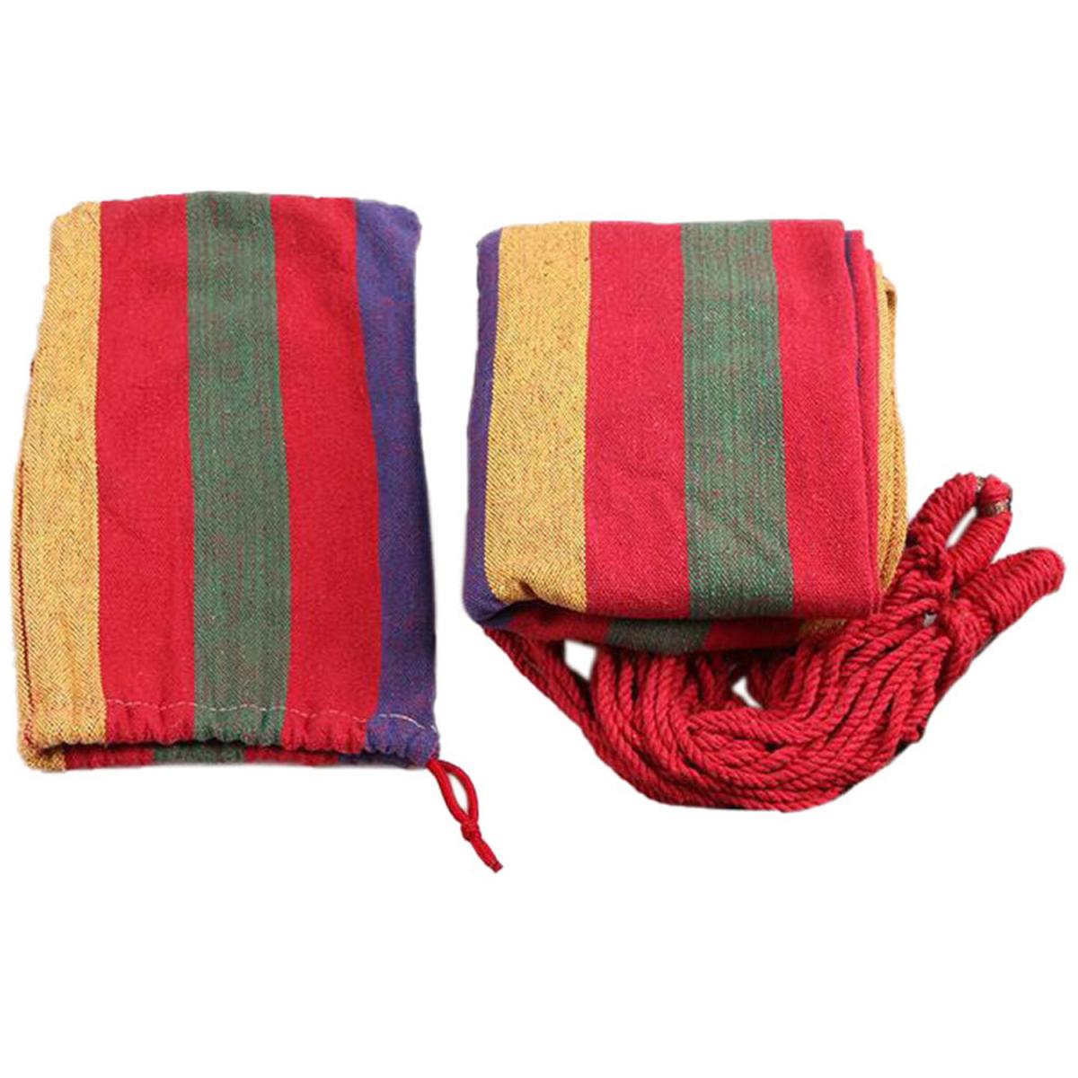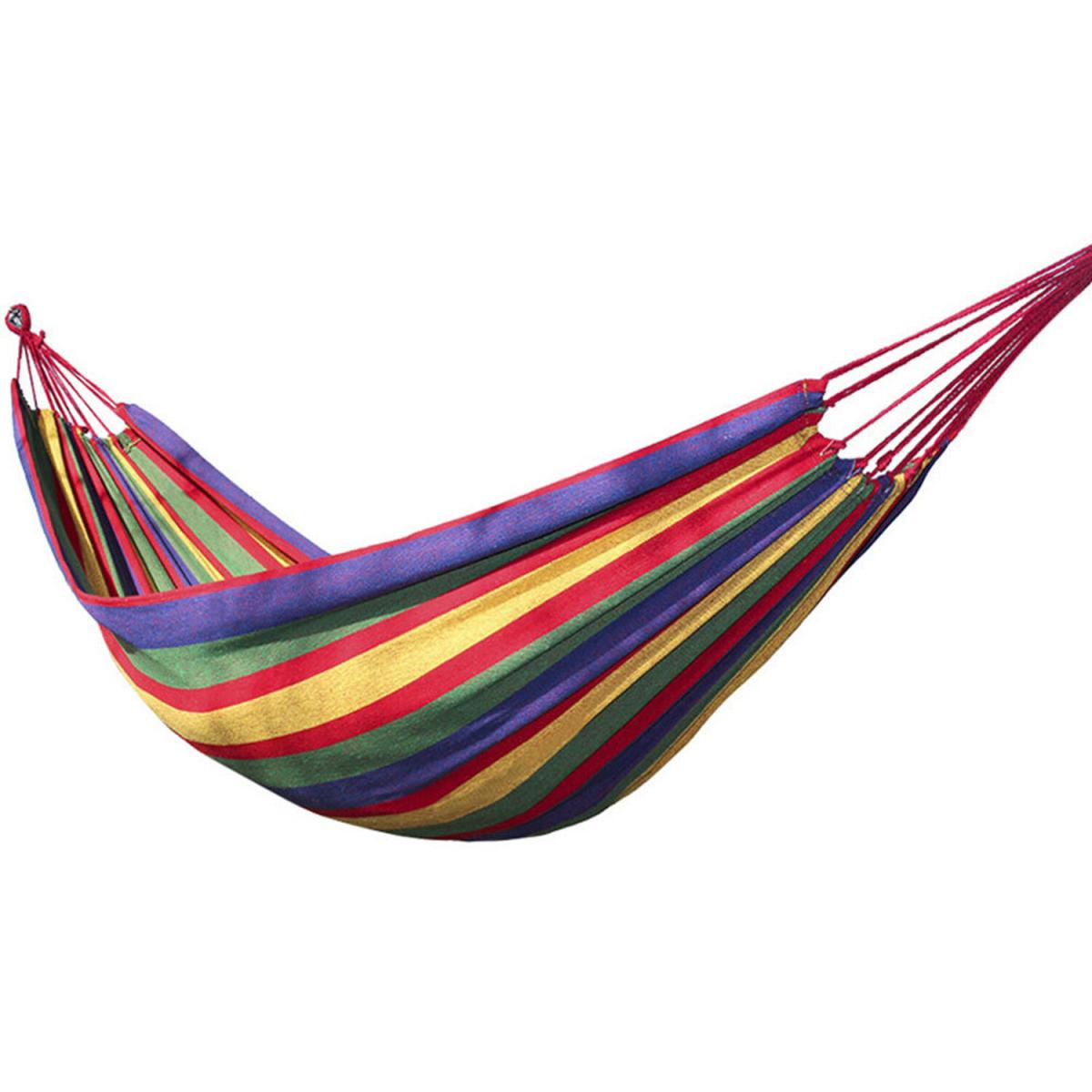 Put your feet up and fall asleep in this gorgeous cotton hammock! Great to lounge in and enjoy a spot of quiet time, this hanging hammock will help you relax at the end of a busy day. The bed has 2 durable metal chains and 18 ropes for stable fixation. Comes with a carry bag to store your hammock easily, or take it with you wherever you want. Attractive design with its strong features, it is ideal for camping, yachts, verandas, pergolas, gardens, outdoor decks and just about anywhere your heart desires - even better if there is a view to enjoy whilst in the hammock! This durable quality hammock would make the perfect gift for anyone.