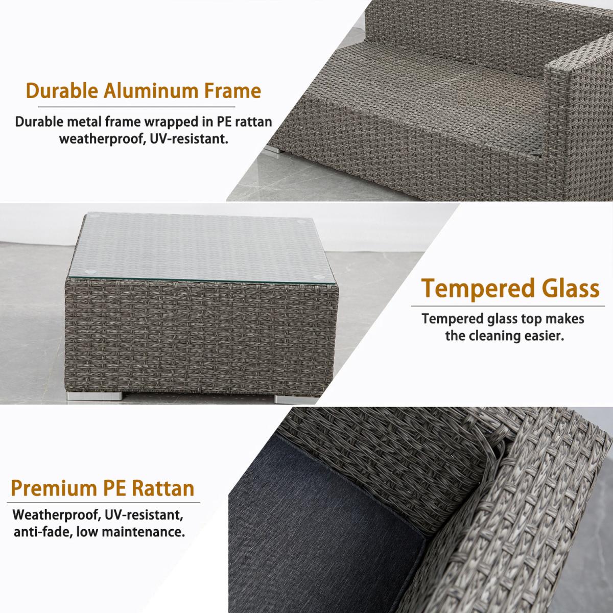 Furniture One provides high level of patio furniture sets both in terms of quality and services. This 4-piece sectional set fits up to 4-5 adults comfortably and adds the perfect experience to any outdoor space. Outdoor patio furniture set with solid construction is durable enough to bear load. Perfect for patio, garden, backyard, pool side, balconies.