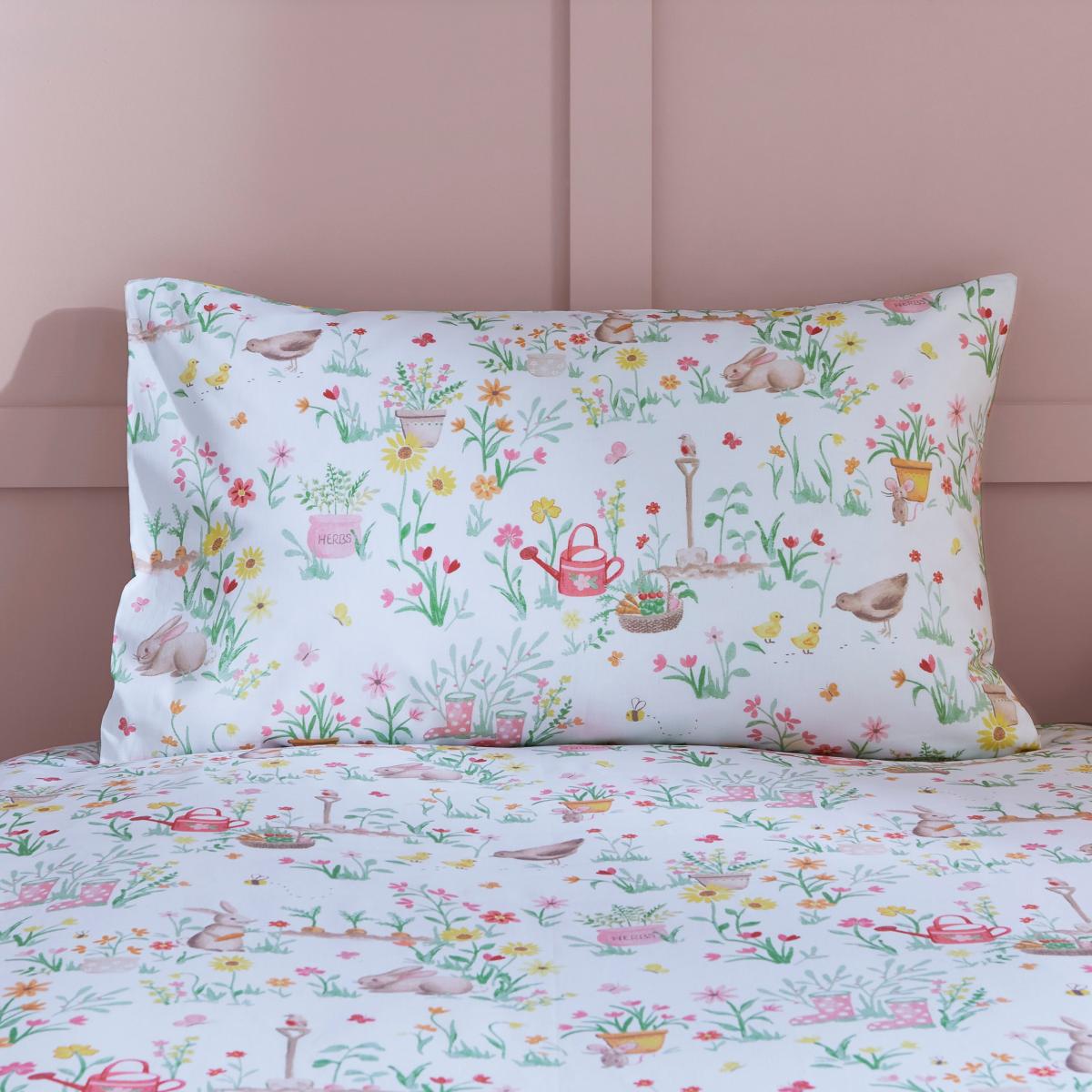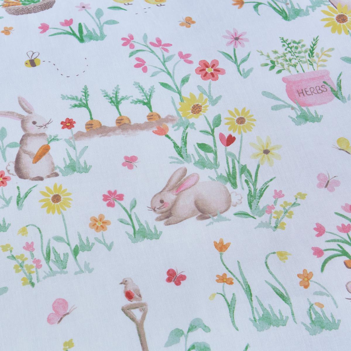 * 100% Cotton Duvet Set* Pack comes with 1 x Duvet Cover and 1 x Pillowcase Featuring a charming combination of bunny rabbits, ditsy florals, and ducklings, these sets offer a whimsical retreat from the everyday. Made from 100% cotton, they provide a soft and gentle touch, creating a cozy and welcoming atmosphere. What makes these sets truly special is their reversible design, allowing you to effortlessly switch between two delightful garden-inspired patterns.