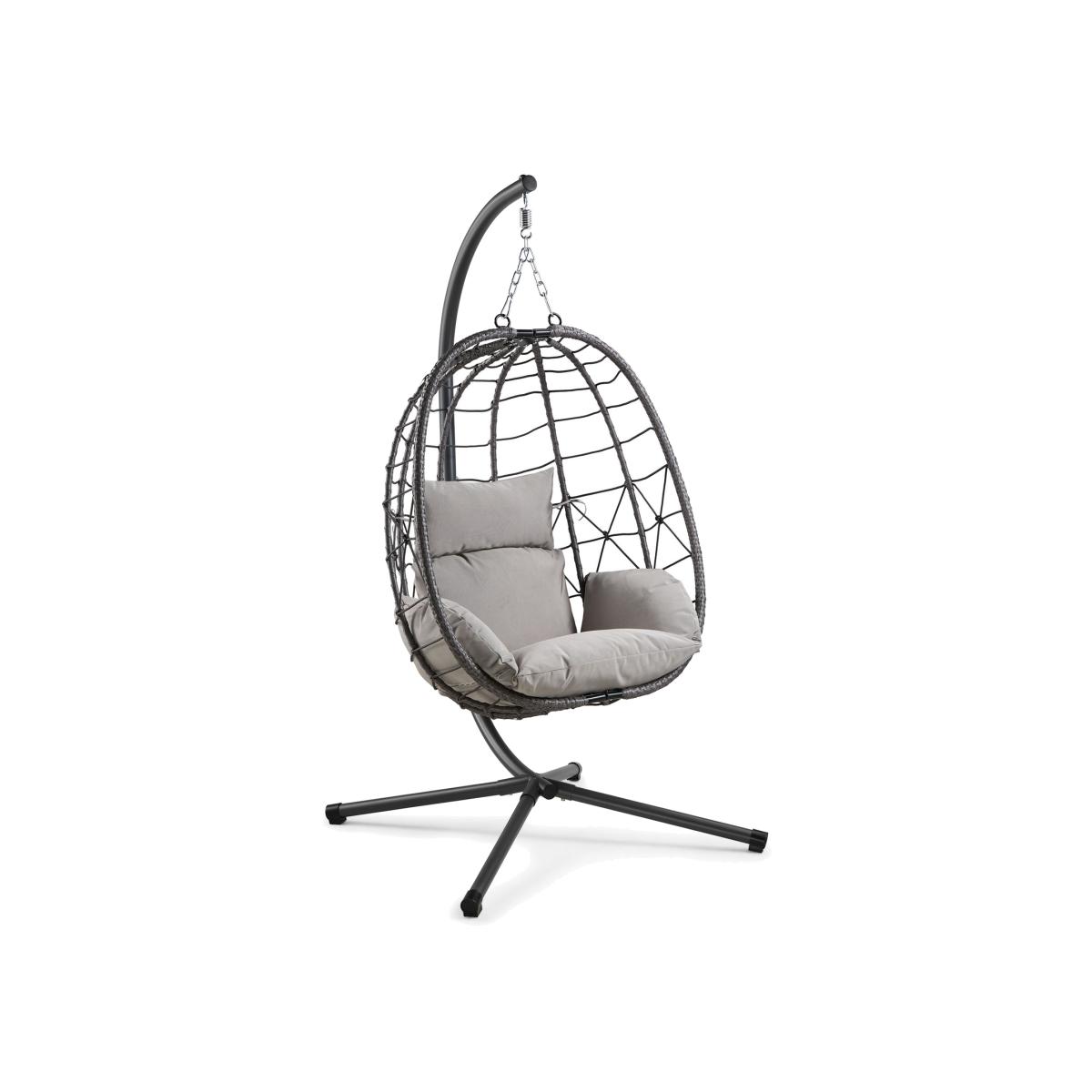 Break away from conventional garden seating and into cushioned comfort with the Von Haus cocoon egg chair, crafted with total relaxation in mind. From the gentle rocking motion of the engulfing basket seat to the padded cushions, you wont want to leave your hanging haven! Relax and unwind al fresco. Our stylish garden egg chair showcases a faux rattan egg-shaped seat, combining the shapes and textures of characterful bohemian design. Perfect for your garden, patio, or decking, the contemporary grey colourway complements any decor in sleek style. More than a style statement, the PE rattan egg garden chair is durable, lightweight, and weather-resistant too. Sway safely thanks to the non-slip rubber feet and sturdy powder coated iron frame, supporting up to 110kg for complete peace of mind.