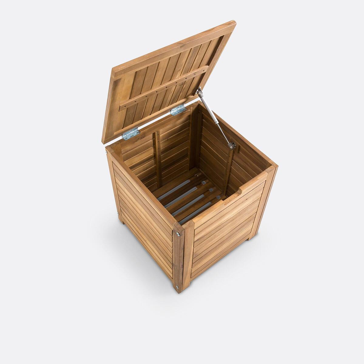 The acacia storage box. Made of resistant wood, which can be kept outside or in your garage, this storage box will allow you to store: cushions, gardening tools, outdoor games...Product Details • In acacia with teak stain. FSC® certified wood • Oiled finish • This acacia storage box is ready to assemble, instructions included. Quality Info • Acacia is a wood that offers good mechanical properties (good resistance to insects and fungi) and is resistant to bad weather (alternation of dry and humid periods). Dimensions • Width: 45cm • Height: 50cm • Depth: 45cm • WOOD FROM SUSTAINABLY MANAGED FORESTS. FSC® certified wood comes from forests that are environmentally, socially and economically well managed.
