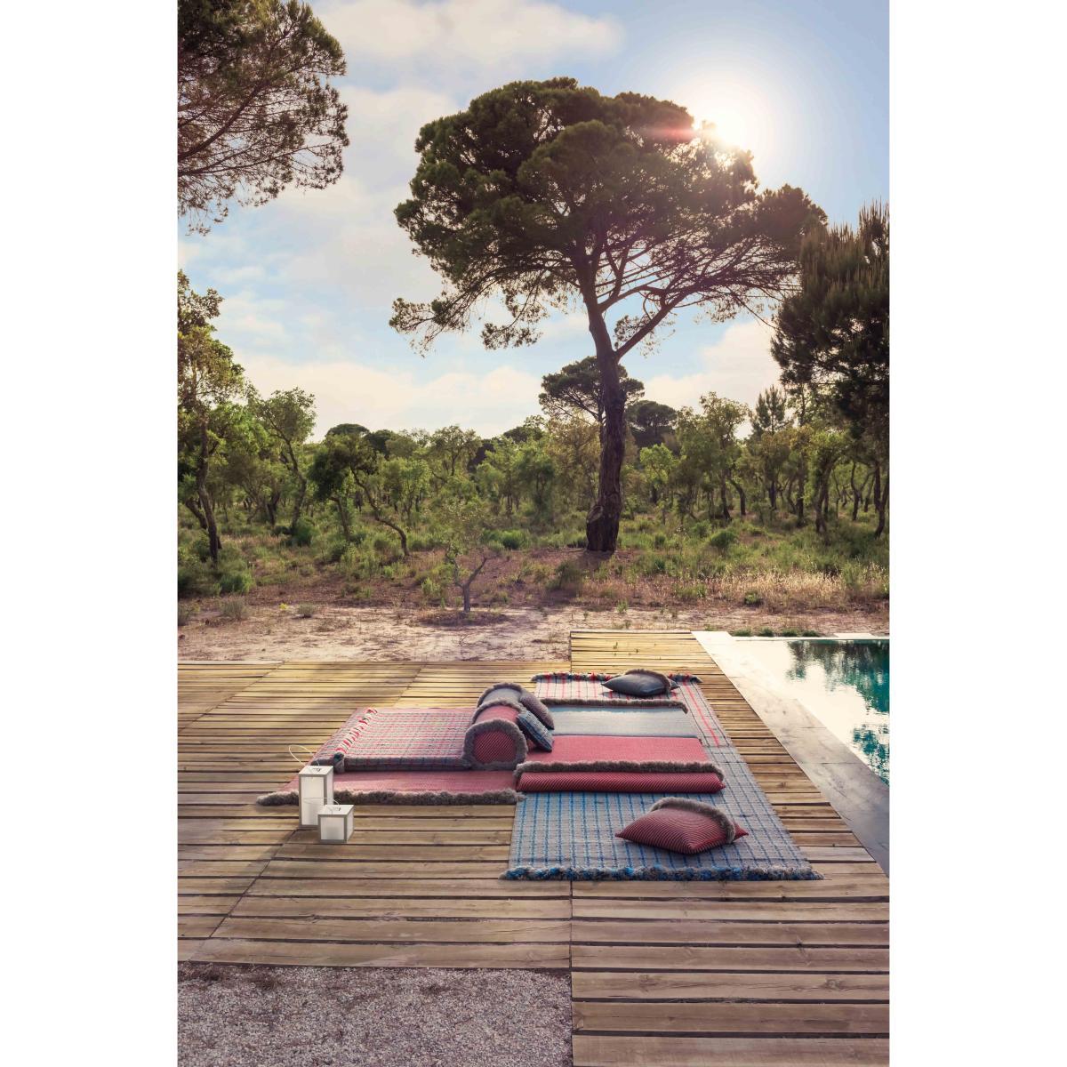 An Oriental, natural and authentic feel for this range created by Patricia Urquiola. The Garden Layers collection consists of rugs, mattresses and cushions with delicate, harmonious lines inspired by Mughal architecture. Very soft, this 100% polypropylene rug is an irresistible invitation to relax. It has colourful fringes on one end that add a touch of originality. Paired with a mattress and surrounded by cushions from the same collection (sold separately), it will blend perfectly into your home or garden for an exceptional Oriental lounge area. Gan Rugs is a member of Good. Weave, a non-profit organisation that ensures that no certified products are the result of child labour and that workers receive fair compensation. A fee is also paid to the organisation to support educational programmes in India and Nepal.