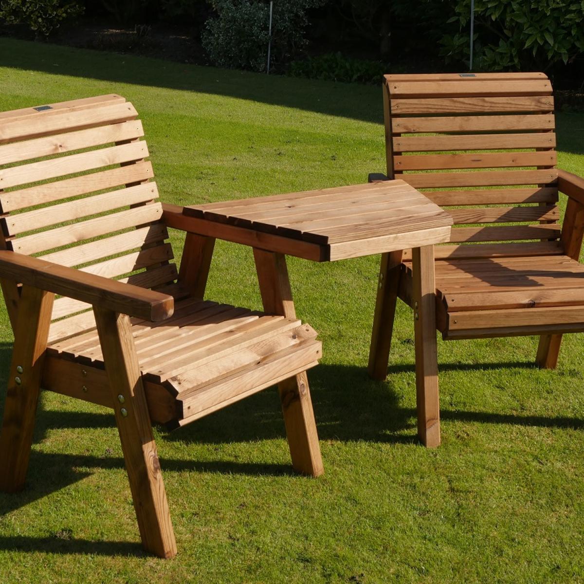 A beautifully made wooden loveseat, made in the UK from Scandinavian redwood, this loveseat will look great in any garden or on any patio, and cared for correctly will give you many years of enjoyment. The love seat is supplied in flatpack and is ready to assemble - the only tools you will need are a screwdriver and a spanner - customers tell us that it's very simple to assemble and each individual chair has taken them just 10-15 minutes. The tray table sits on the arms of the two chairs, so is easily removable if you need to move the loveseat.