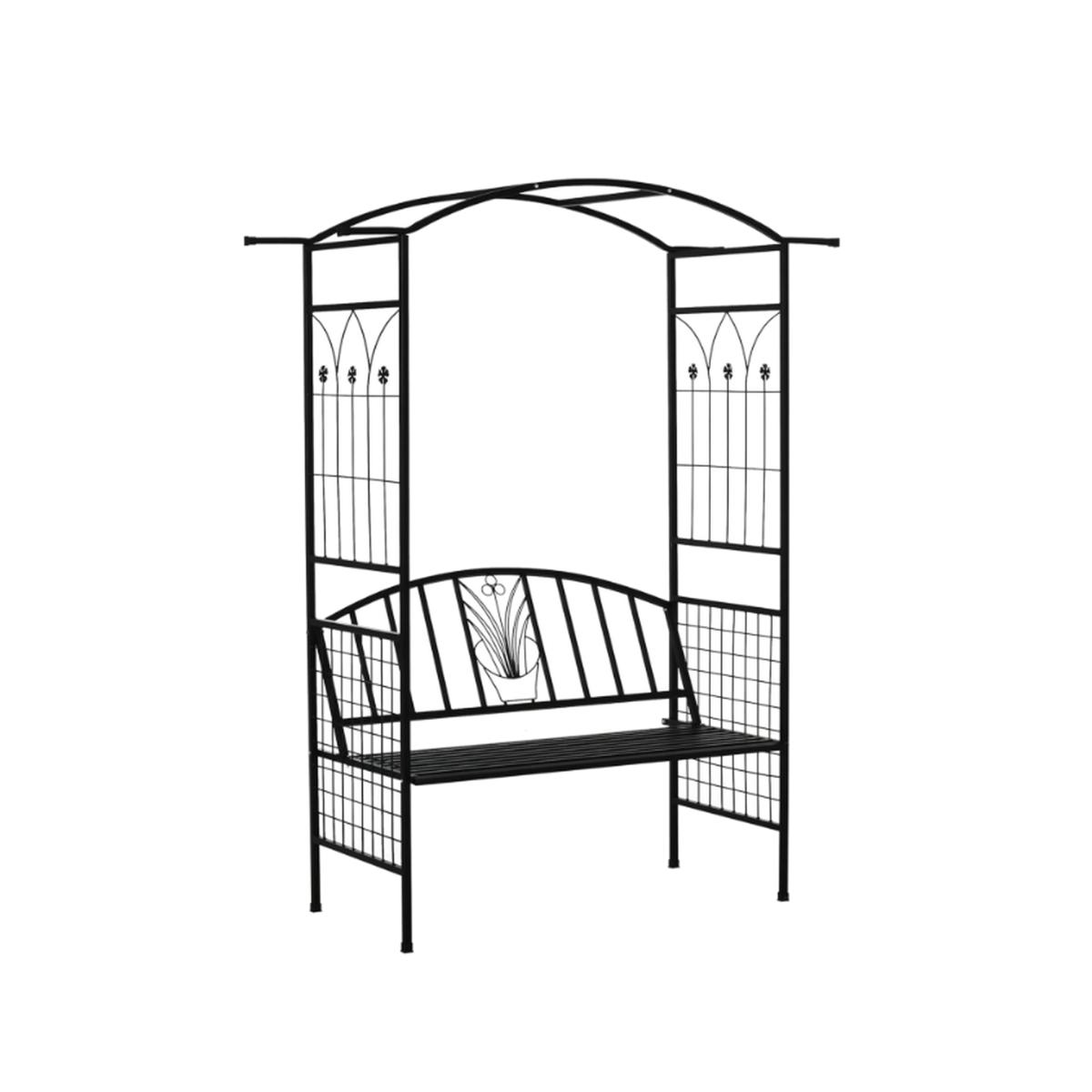 Create a charming outdoor space where you will want to sit all day long with this garden arch bench. Featuring a dual design, it consists of a bench for two and a garden arch that is joined together in one piece. Trellises on either side provide a place for vines and climbing plants to grow. Made from powder coated metal, the frame is sturdy and durable, making this piece a mainstay in your garden for the foreseeable future and one that will give you many years of happiness. Garden Metal Arbor Love Seat - Matte Black